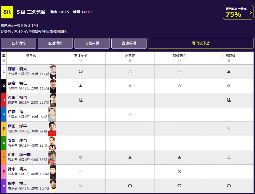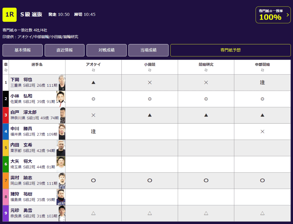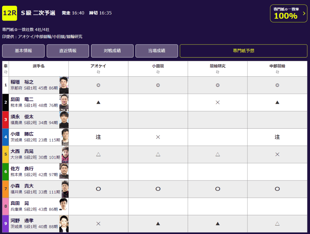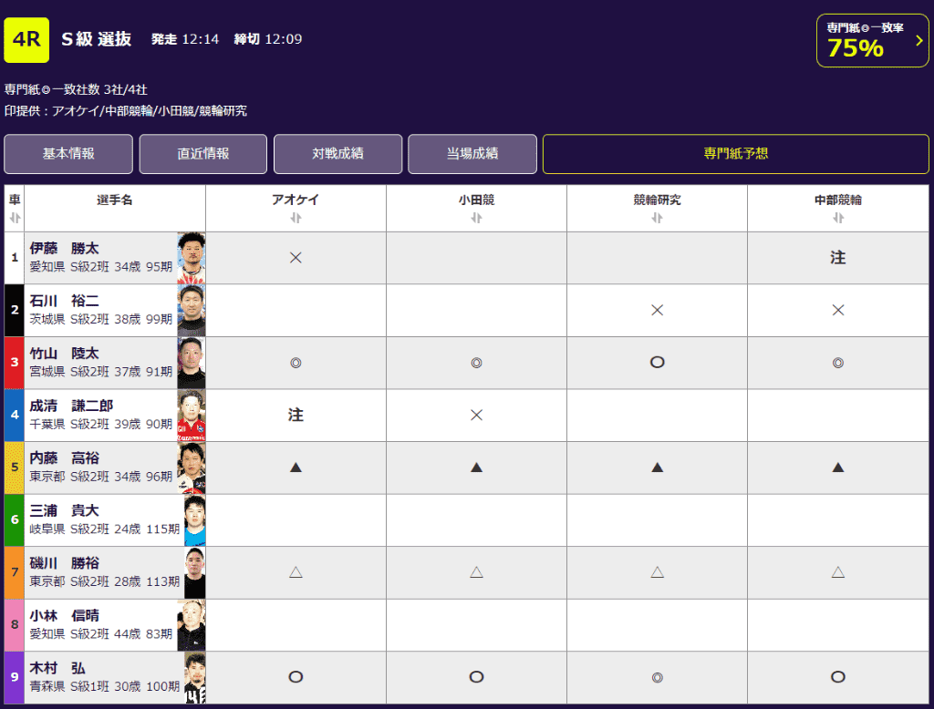 アオケイ・小田競・中部競輪・競輪研究4紙合同の競輪サイト