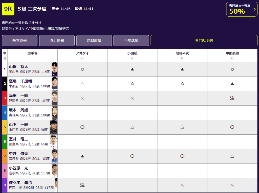 2日目も4社それぞれの予想を比較して、ぜひ車券購入の参考にしてください。