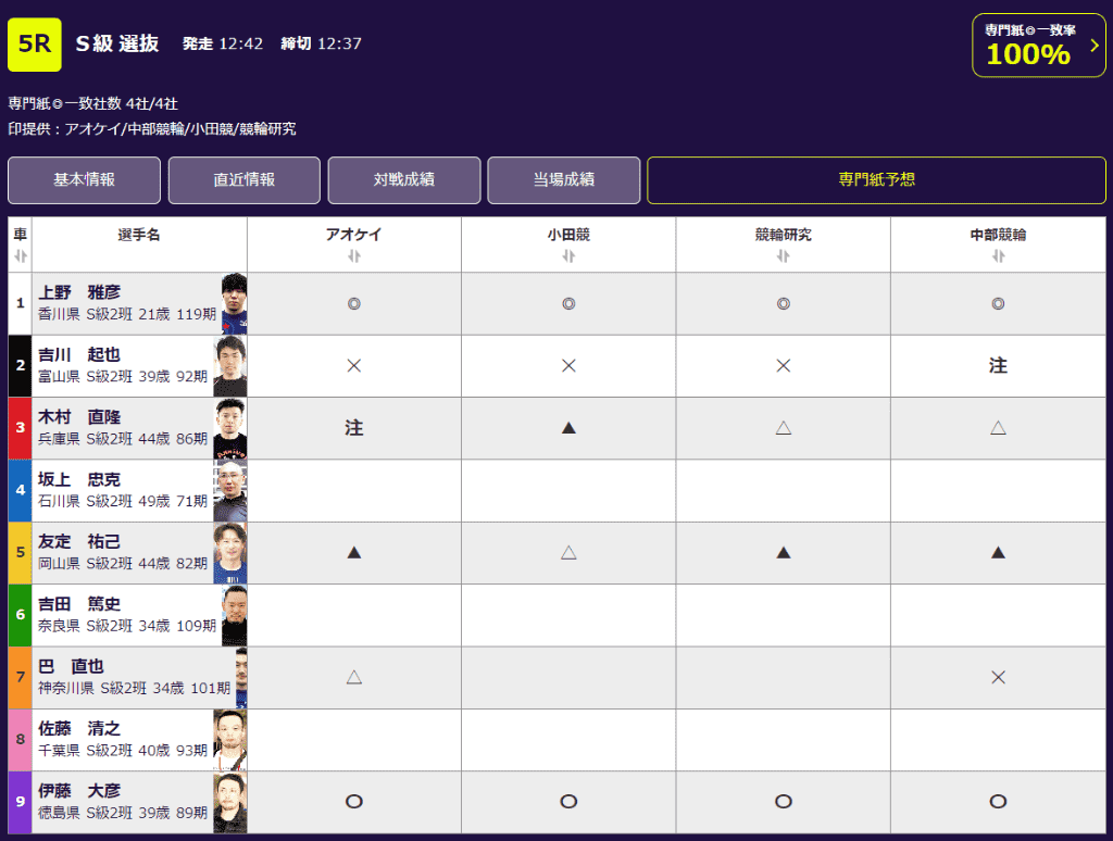 目標の⑤池野健太は番手に同県の先輩、3番手に地元の②山崎光展なら早めの仕掛けも厭わない?