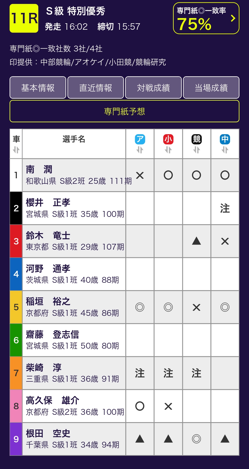アオケイ・小田競・中部競輪・競輪研究4紙合同の競輪サイト
