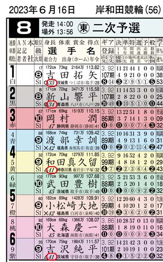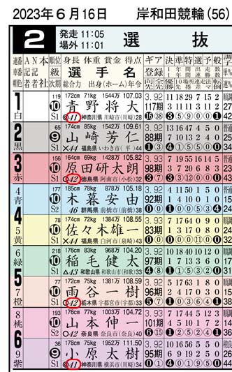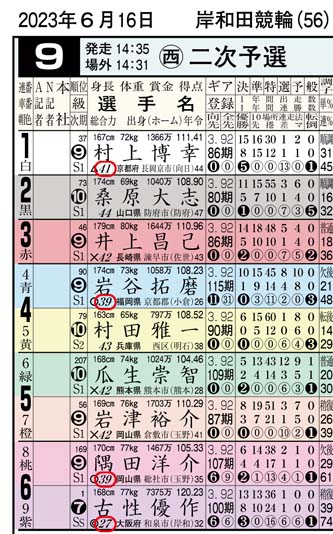 以下⑨松浦悠士②犬伏湧也⑤浅井康太