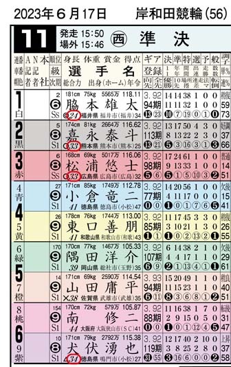 以下②嘉永泰斗③松浦悠士⑨犬伏湧也