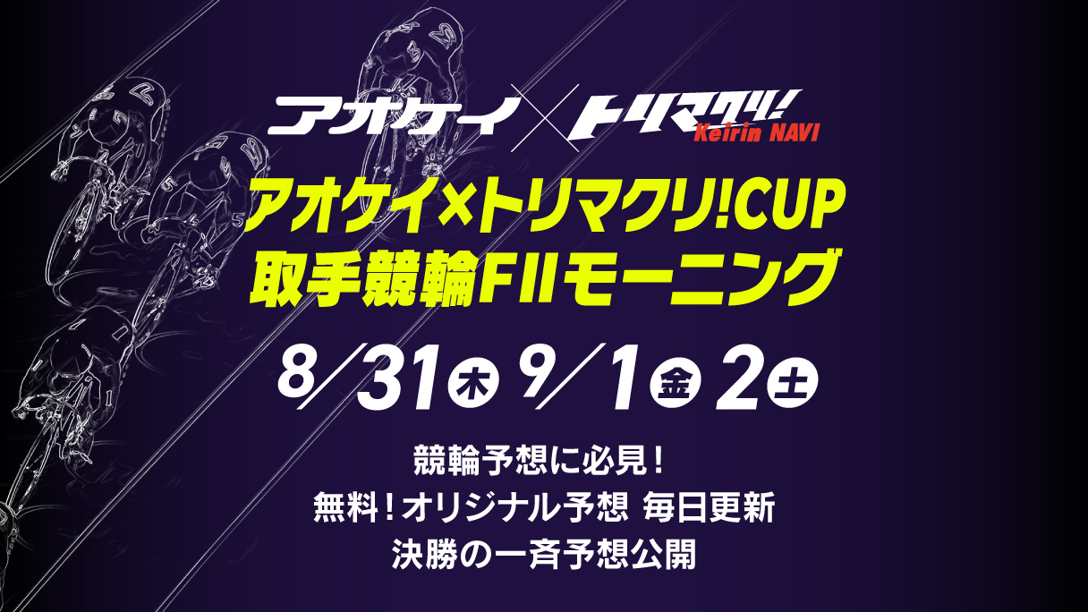 今シリーズはアオケイ×トリマクリ!CUPのオリジナル予想を毎日更新! 最終日はチャレンジ戦・A級1・2班戦・ガールズケイリンの決勝を記者一斉予想します! 無料公開ですのでぜひご覧ください。