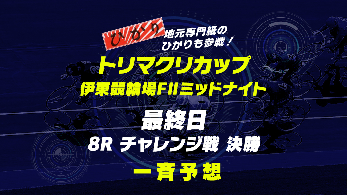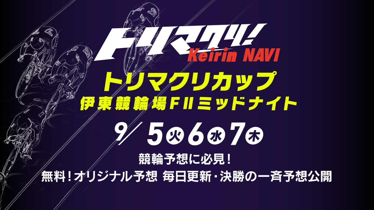 9/5~7伊東温泉競輪場のミッドナイト競輪はトリマクリカップ 記者厳選のオリジナル予想を毎日更新! 最終日はチャレンジ戦・A級1・2班戦の決勝を記者一斉予想! 無料公開ですのでぜひご覧ください。