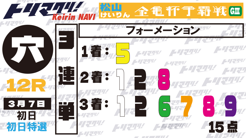 初日から二段駆けはないだろうが、⑦兼本将が逃げれば①瓜生崇はシビアに番手から踏む。