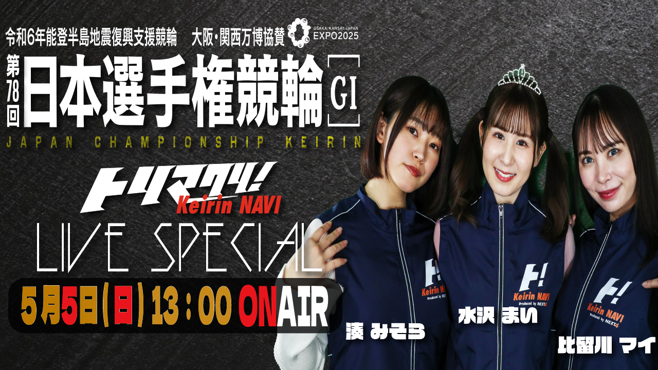 いよいよ明日 第78回日本選手権競輪 GⅠトリマクリ!LIVE SPECIAL 5月5日(日)13時~ 水沢まい ・比留川マイ・湊みそらの予想をお楽しみください‼