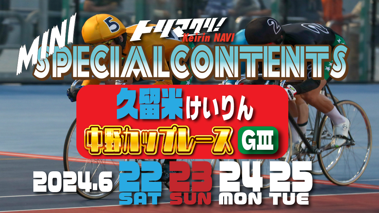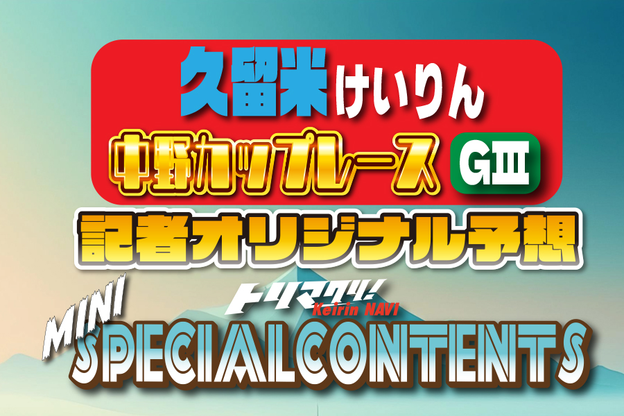 トリマクリ!Keirin NAVIでは特別競輪やグレードレース(不定期)にてSPECIALCONTENTSを開設していましたが、この度その他のグレードレースでもSPECIALCONTENTSを開設します! その名もMINI SPECIALCONTENTS! 車券の参考になるトリマクリ!記者によるオリジナル予想!当たれば一攫千金高配当を狙う穴予想まで是非車券購入の参考に☆ 今回は「久留米競輪 第30回中野カップレースGⅢ」