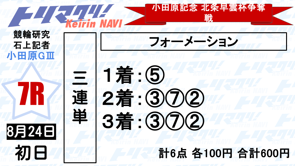 7R 結果 3-7-5 三連単 払戻金額¥1,340円