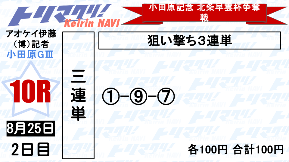 初日はアオケイ 伊藤(博)記者が10R 9-1-5 払い戻し金¥600円的中 さあ、2日目はどうなりますか。