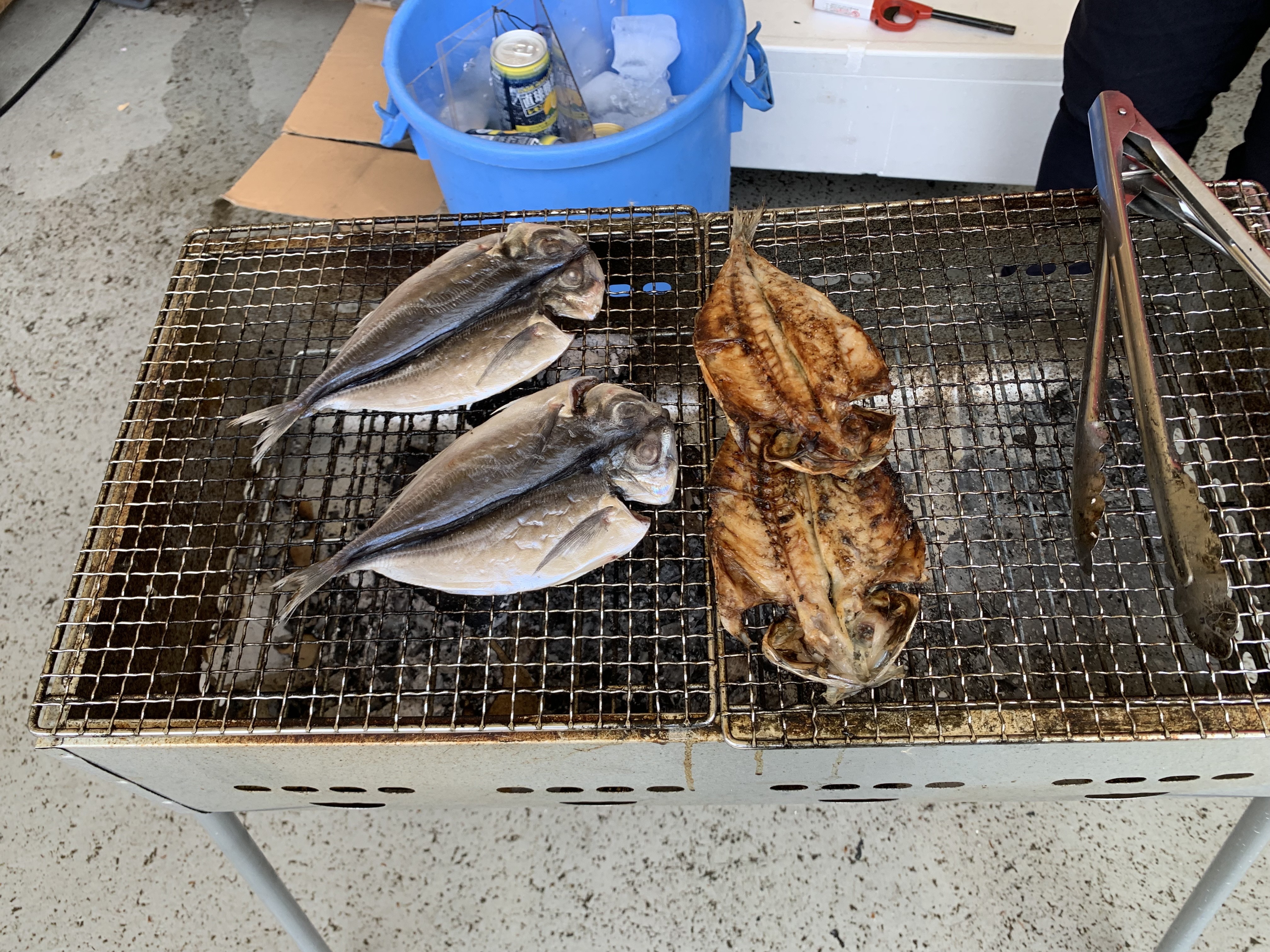 場内のキッチンカーでは伊東温泉横丁から継承されたラーメンなどのほか、記念開催中は「ひもの」も焼いてくれますよ。