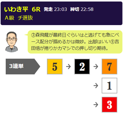 いわき平競輪場 FⅡミッドナイト 7車立てならTIPSTAR杯