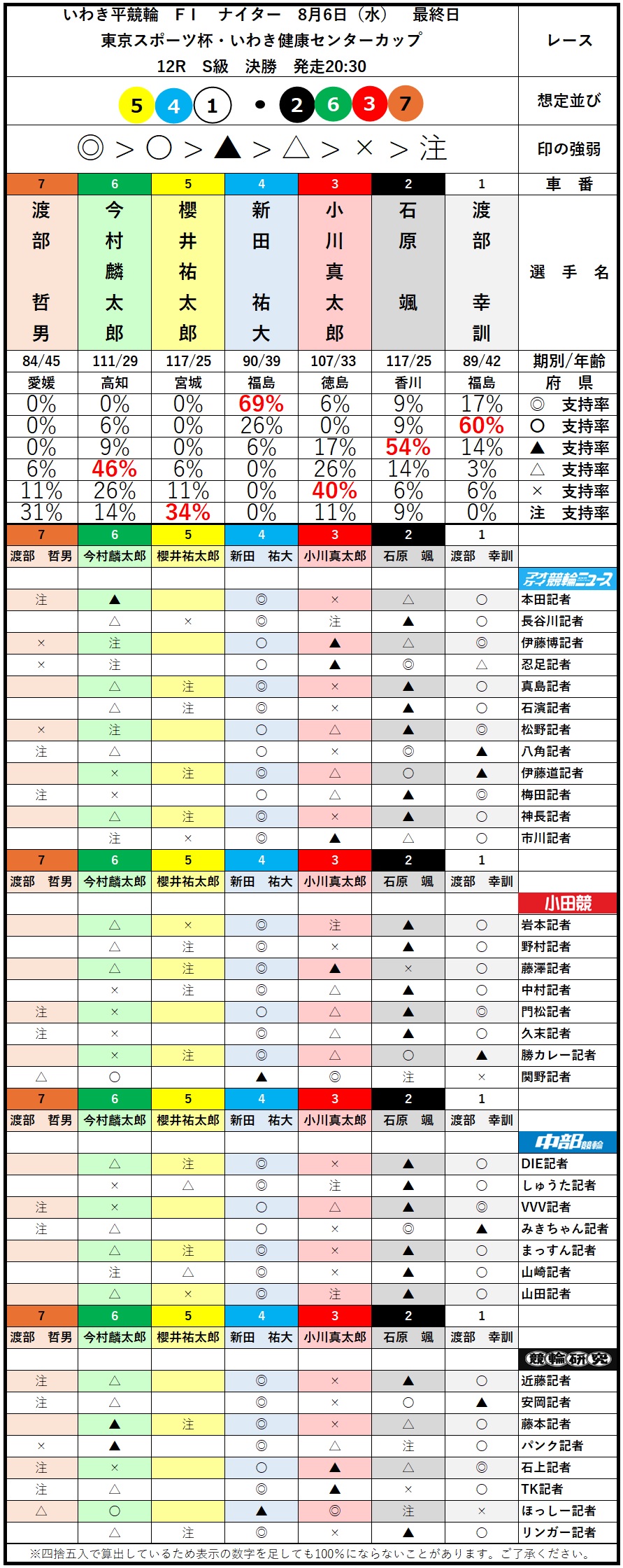 続く△支持率トップは46%集めた⑥今村麟太郎。連日好位確保からの捲りが見事に決まっている。決勝は②石原の番手。その②石原が東北分断、二段駆け粉砕、一気の飛び出しなど何でもやって4角先頭なら、最後は⑥今村が交わしてVも可能だ。