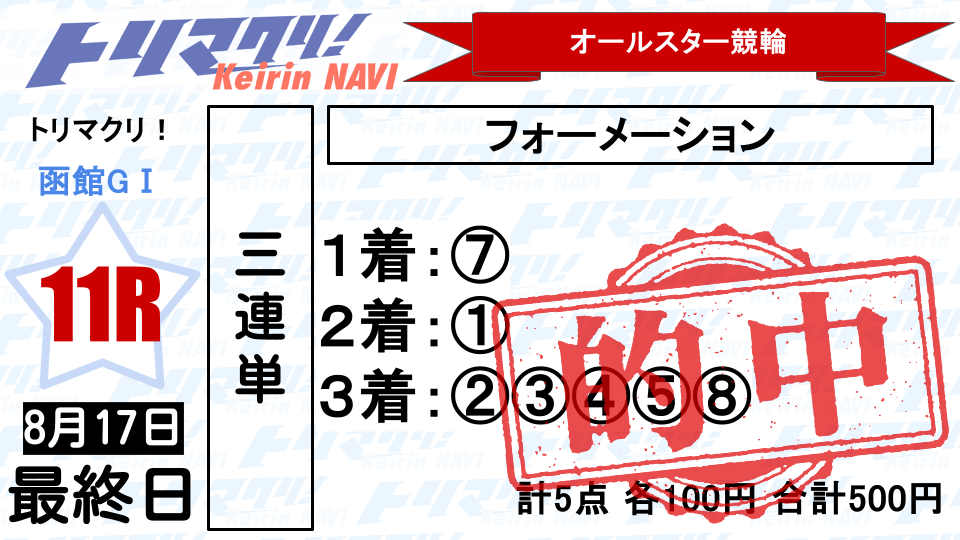準決は3番手確保から脇本を捲って勝ち名乗り。初のGⅠ制覇へと意気込む。ここは強力な近畿二段駆け態勢に対してどう立ち向かうかが鍵。自らのレースを貫くか、脚を溜めて一瞬のチャンスに懸けるのか。太田次第では2016年にオールスターを制した⑧岩津裕介が再びこの同開催で輝きを放つ。