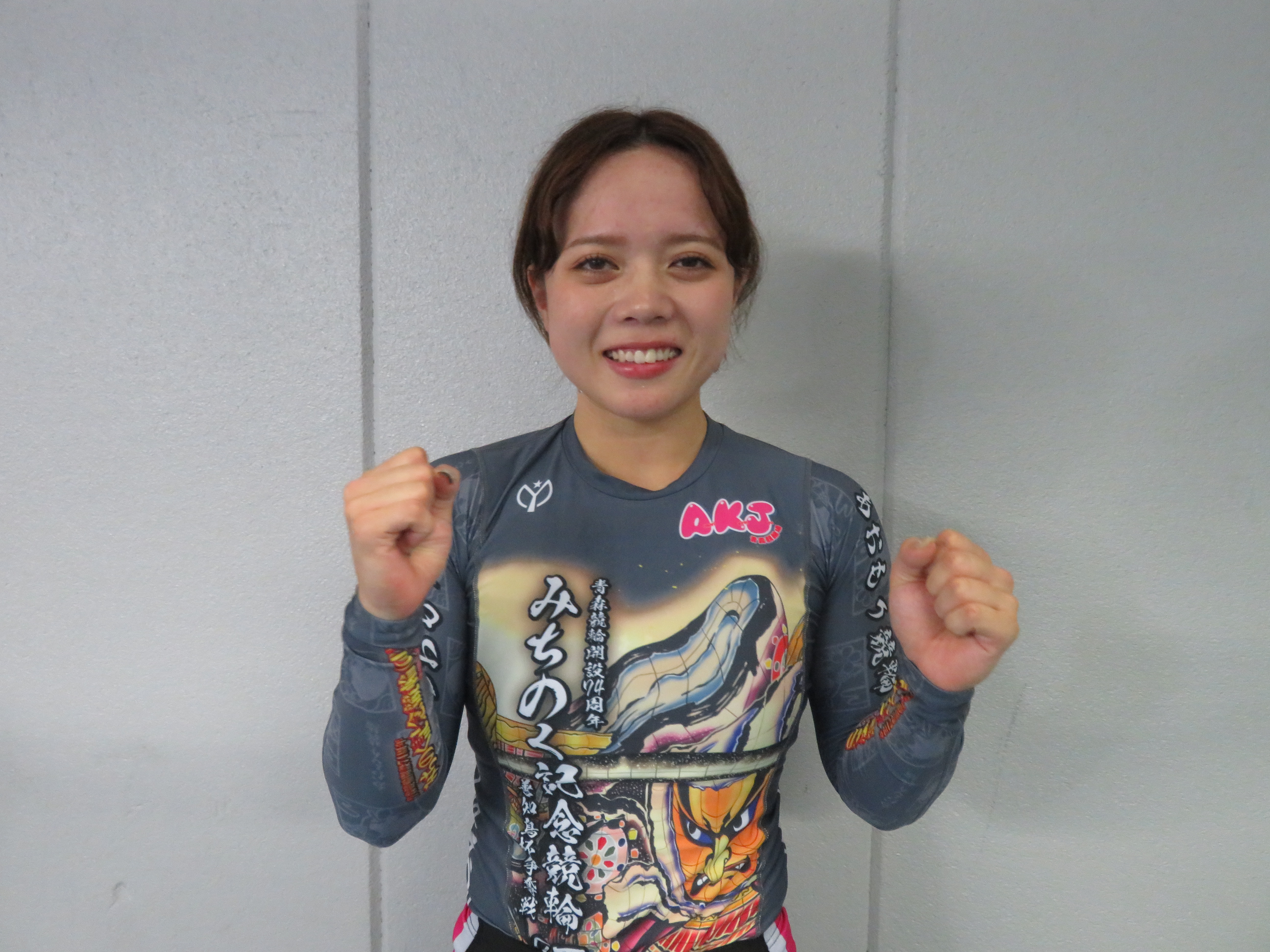 小倉ナイター競輪「寒北斗酒造杯(FⅡ)」は二日目を迎えた。ガールズ予選2を1着突破した熊谷芽緯に話を聞いた。