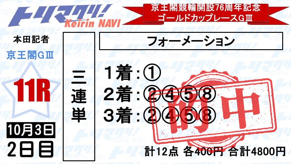 初日は競輪研究 ぱんく記者が2レースとも的中‼