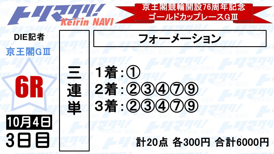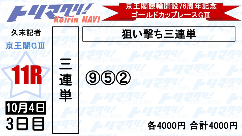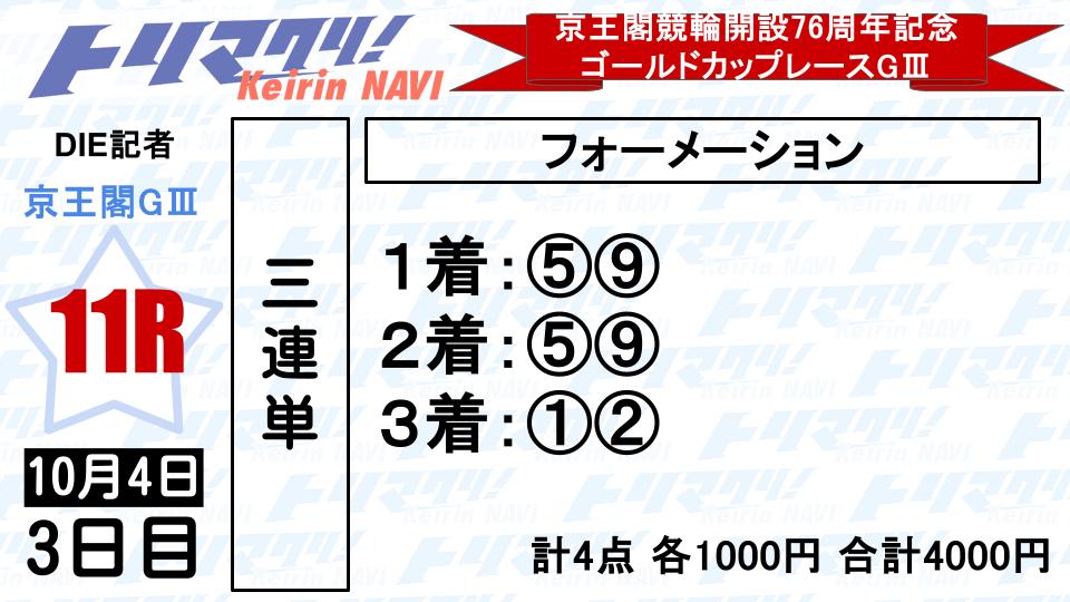 昨日のレースを見ると⑨脇本の状態に全く問題はなさそう。マークも⑤浅井と余程のことがない限り離れる展開は考えにくいのでワンツーから。三着もデキのいい②菅田で大丈夫か。一点で勝負してみる。
