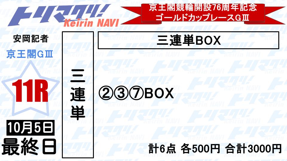 【11R S級 特秀】 ⑥福田が駆けるか。これを③清水が捲る流れ。②高橋、⑦園田の単も十分にありそう。 237ボックス6点を500円ずつ計3000円。3-9-72 2点を1000円ずつ 計2000円 2-3-9154 4点を500円ずつ計2000円