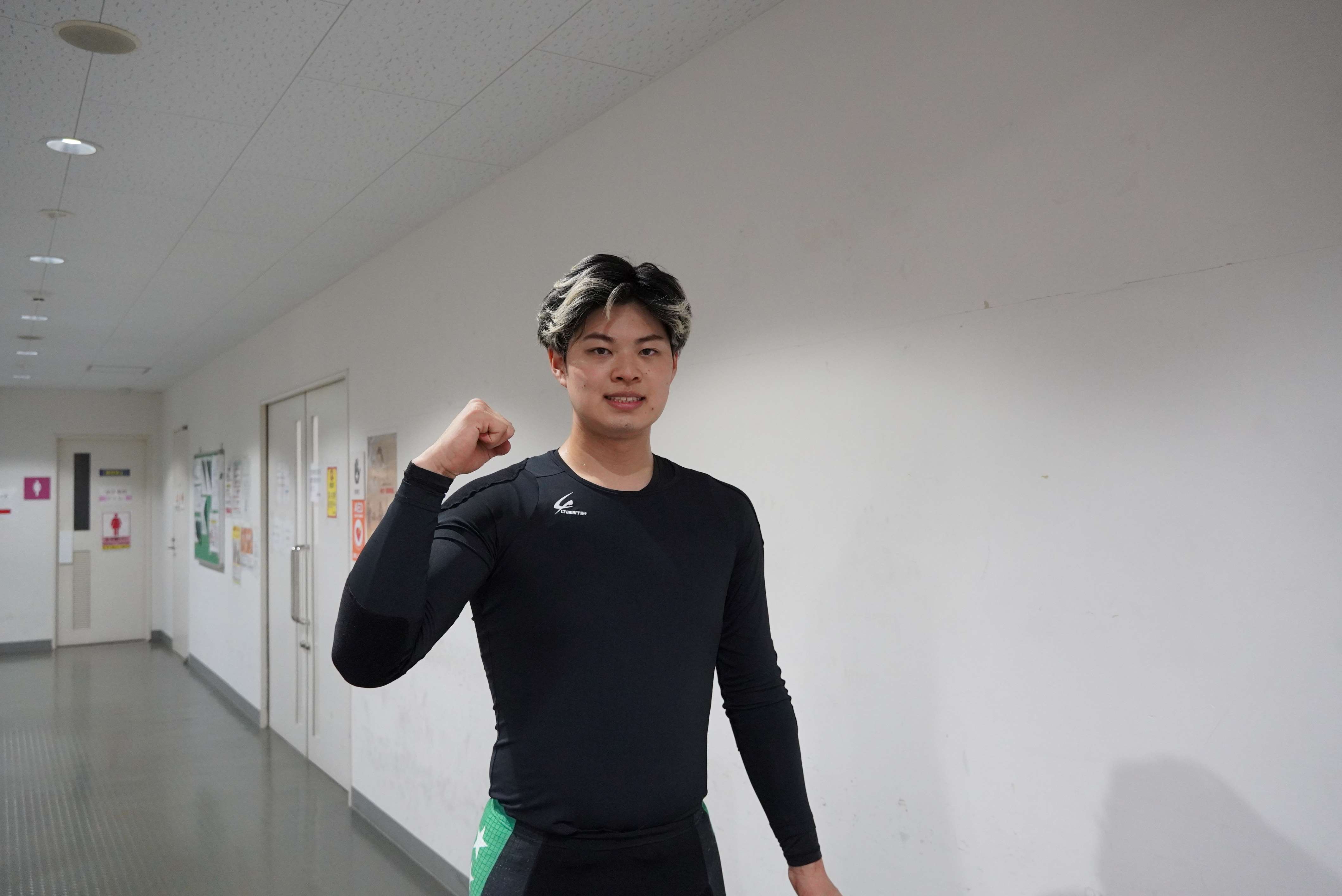 自分は地脚型なのでダッシュがないからスタートを取るのは苦手です。だから初日は前を取ってくれた山田さんのおかげ。後からかかって来るのでフレームも重たいモノを使ってます。ダッシュを強化するのが当面の課題ですね。今、福井はバンクが改修中で来年の秋まで使えないんですけど、脇本雄太さんに直接指導してもらえるのでこれ以上の環境はないしありがたいことだと思っています。「チャレンジは全部先行して来い」と言われているので今日も積極的なレースで頑張りたいですね。