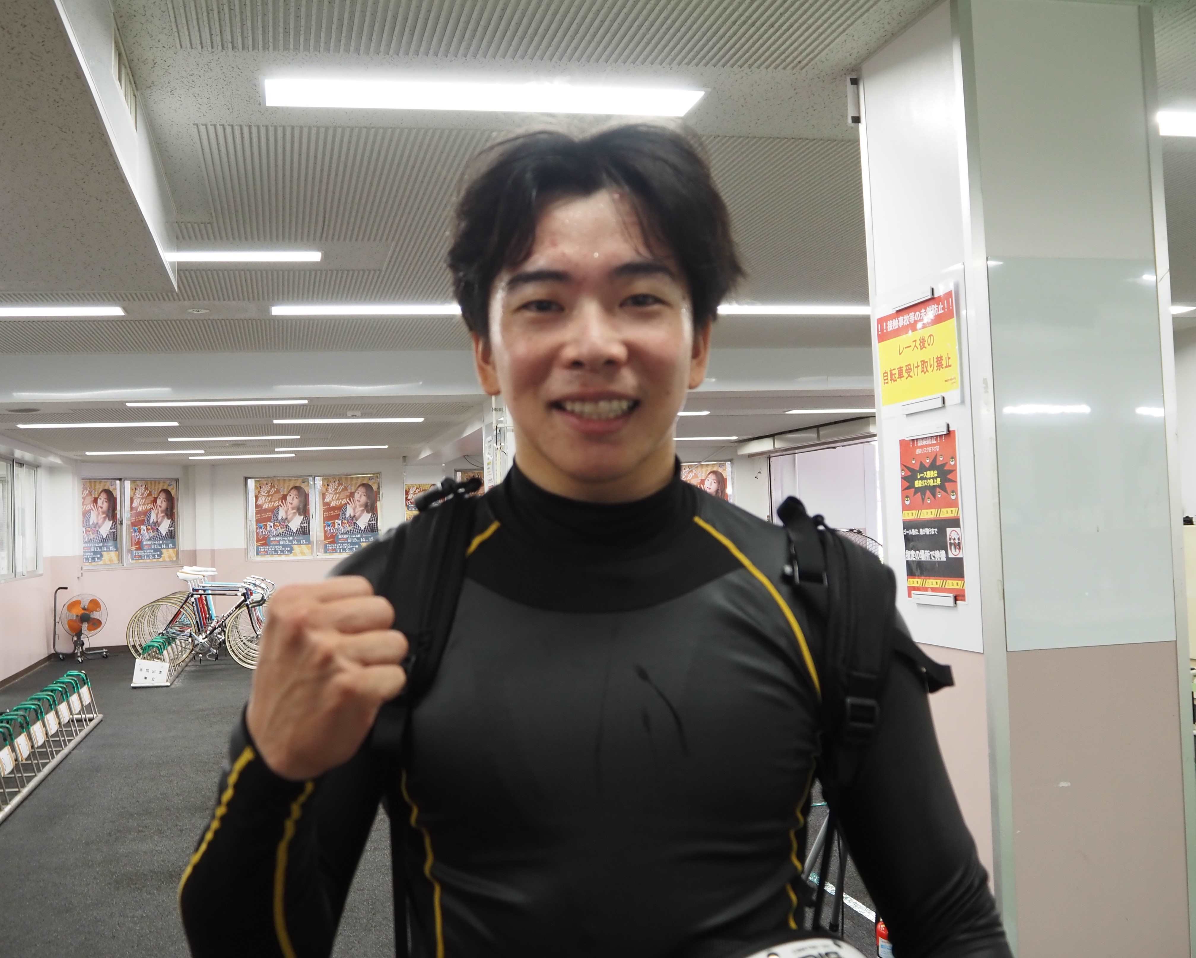 「初日は考えていた通りの展開になりました。中団取れたし先に動かなくてもいいかなと。市川さんが突っ張ってからは自分のタイミングで仕掛けられました。バンクは全体的に軽くて流れる感じがしたけど、バックの向かい風だけはキツかった。台風の影響だと思うし、2日目はよくなってくれれば。朝の指定練習を乗った感じだと練習疲れも大丈夫そうです」。