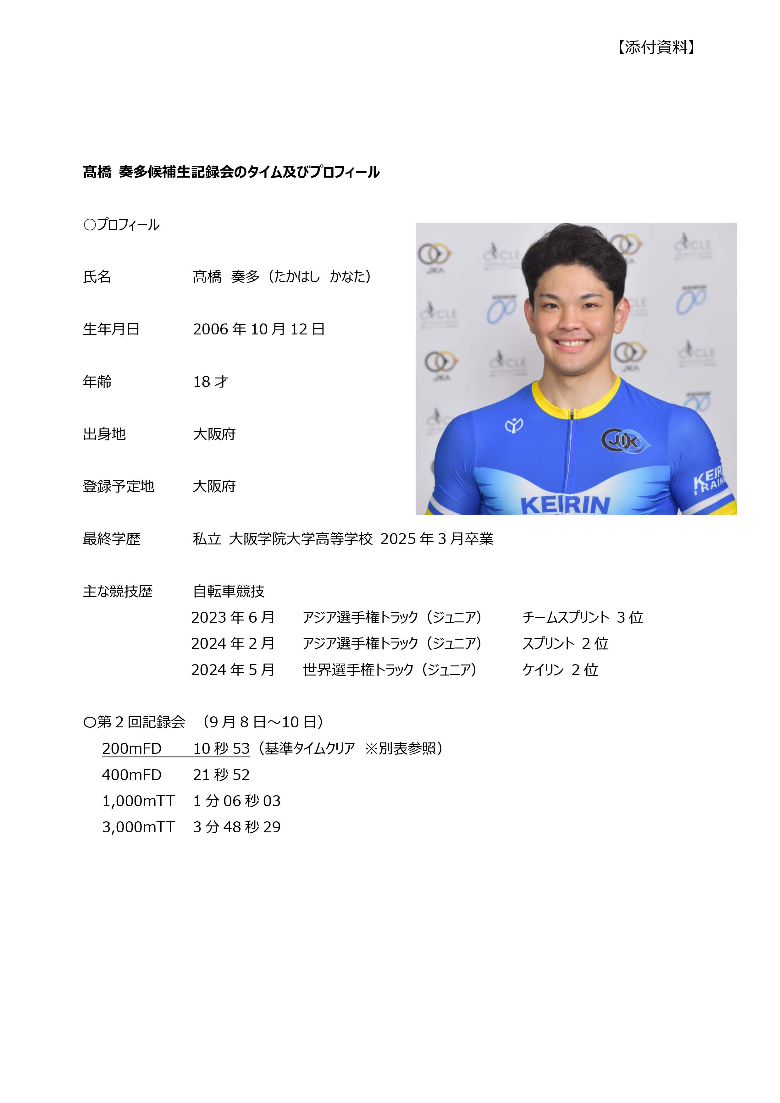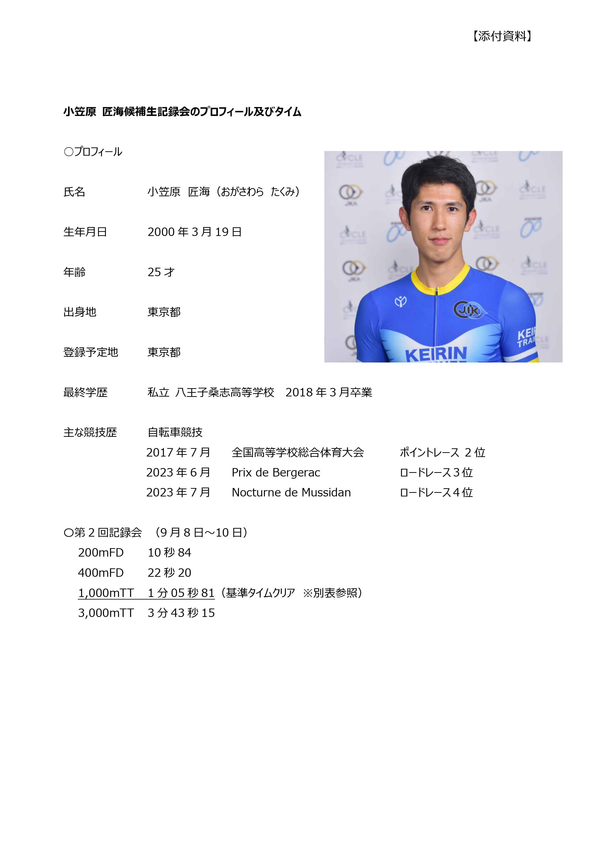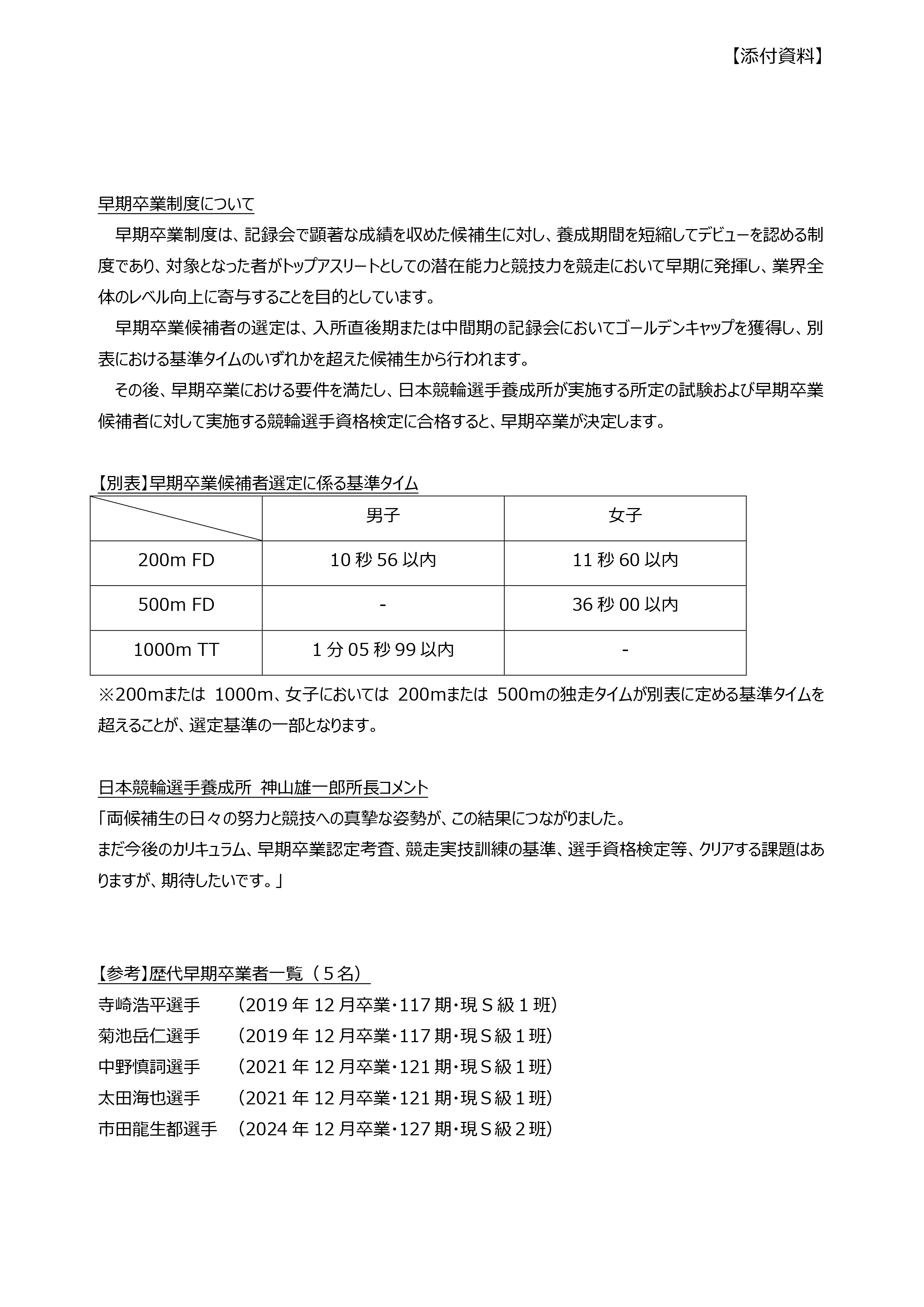 公益財団法人JKA日本競輪選手養成所(所長:神山 雄一郎)は、9月26日(金)に早期卒業認定委員会(委員長:業務執行統括役 浅野 史久)を開催し、第129回(男子)小笠原 匠海(おがさわら たくみ)候補生および、髙橋 奏多(たかはし かなた)候補生、の2名を早期卒業候補者として選定しましたのでお知らせいたします。