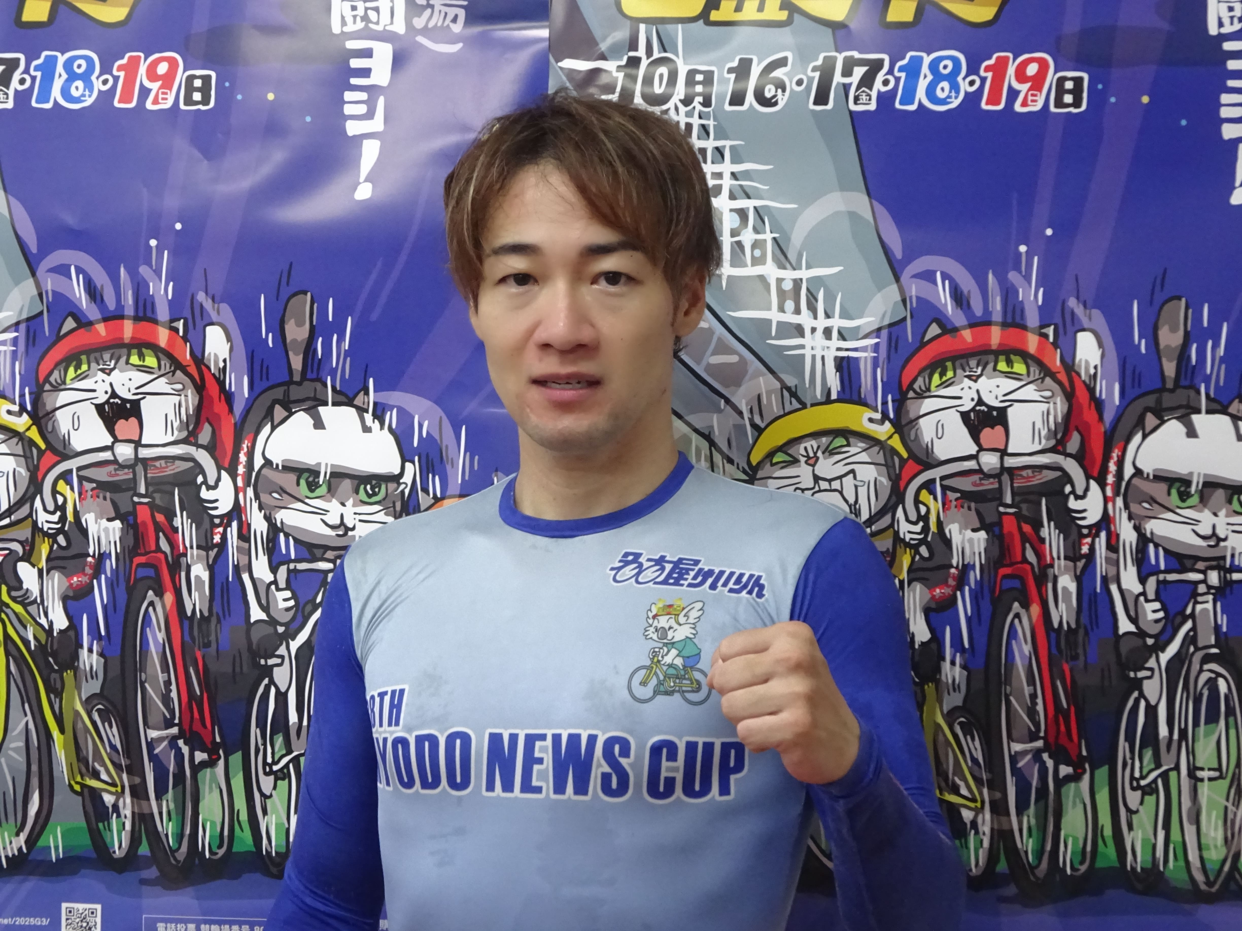 「青柳君の頑張りのお陰です。いつも練習を一緒にやっているし、結果を出せて良かった。初手で後ろになったけど作戦の範疇。阿部君、渡邉雅君はホームでは来ると思っていたし、牽制する準備はしていた。雨で気になる点もあったが、前のガールズのレースを見て参考にしました。余裕はあったし、直線では振り切れると思った。久々の優勝だけど、手応えはまだまだ」。