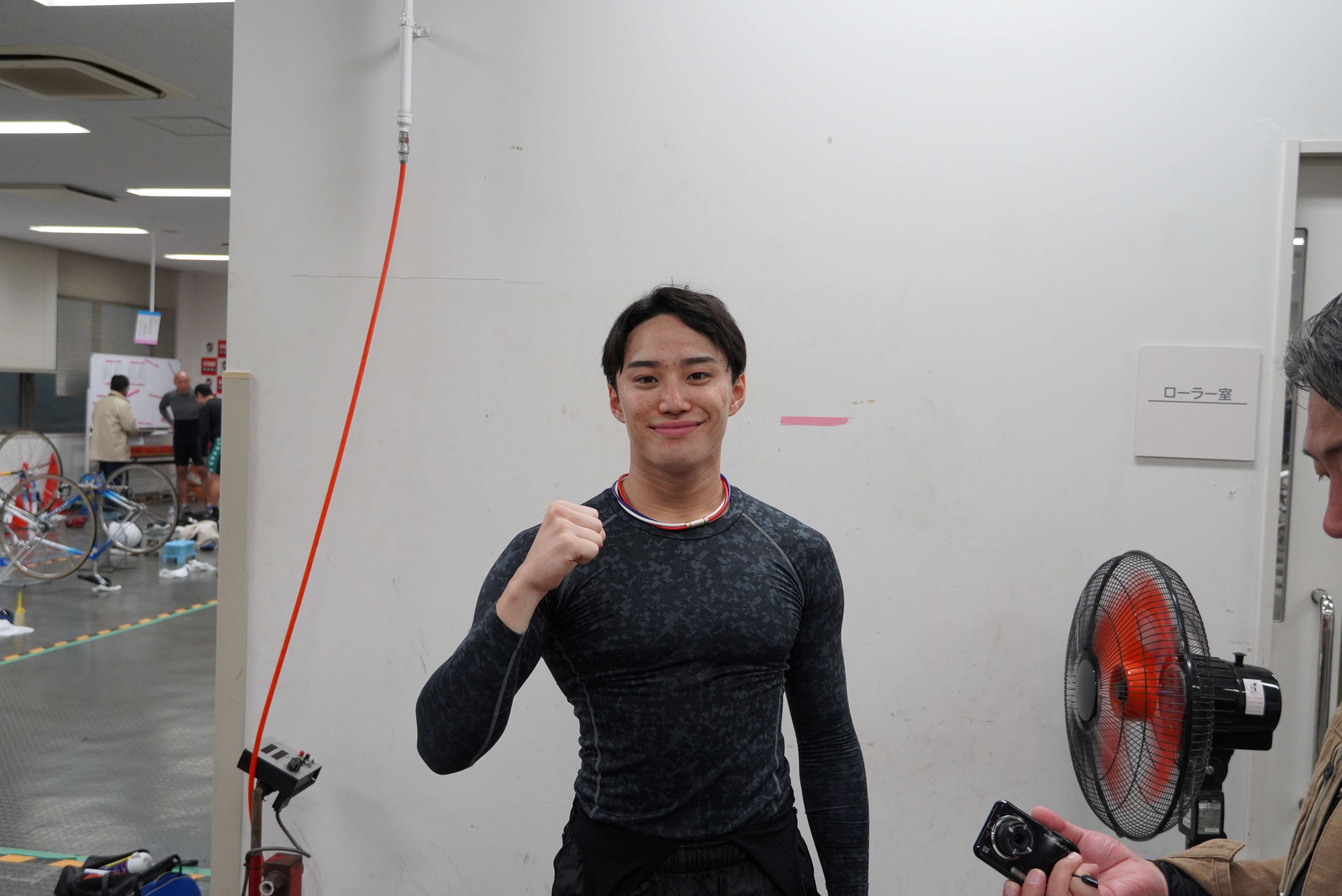 特別昇班は立川で一度失敗しているので。その時は中団からカマしたんですけど最後に別線の人に抜かれてしまって。今回はその時以上に練習ができているのでしっかり決めたいですね。ここは毎朝練習で走っているバンクだけど、昨日に関してはやや重く感じました。今日は前がゆるんだらすぐに仕掛けていくつもりだし、力を出し切って勝てるように頑張ります。師匠の堀内俊介さんは上位で活躍しているし、自分も早く追いつきたいです。