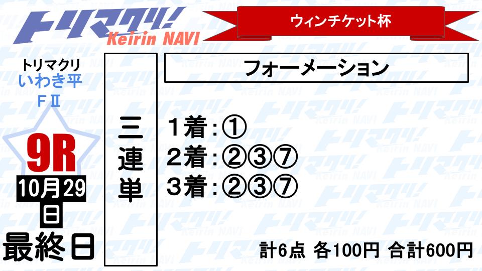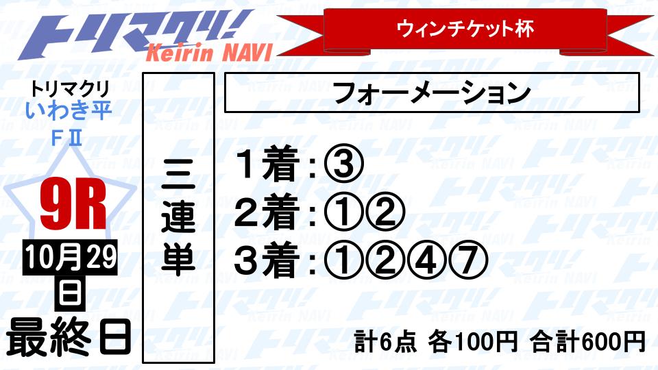 ③角田の勢いを信頼して完全優勝の頭車券。マークの①原と突っ込んできそうな②柿沼の絡み