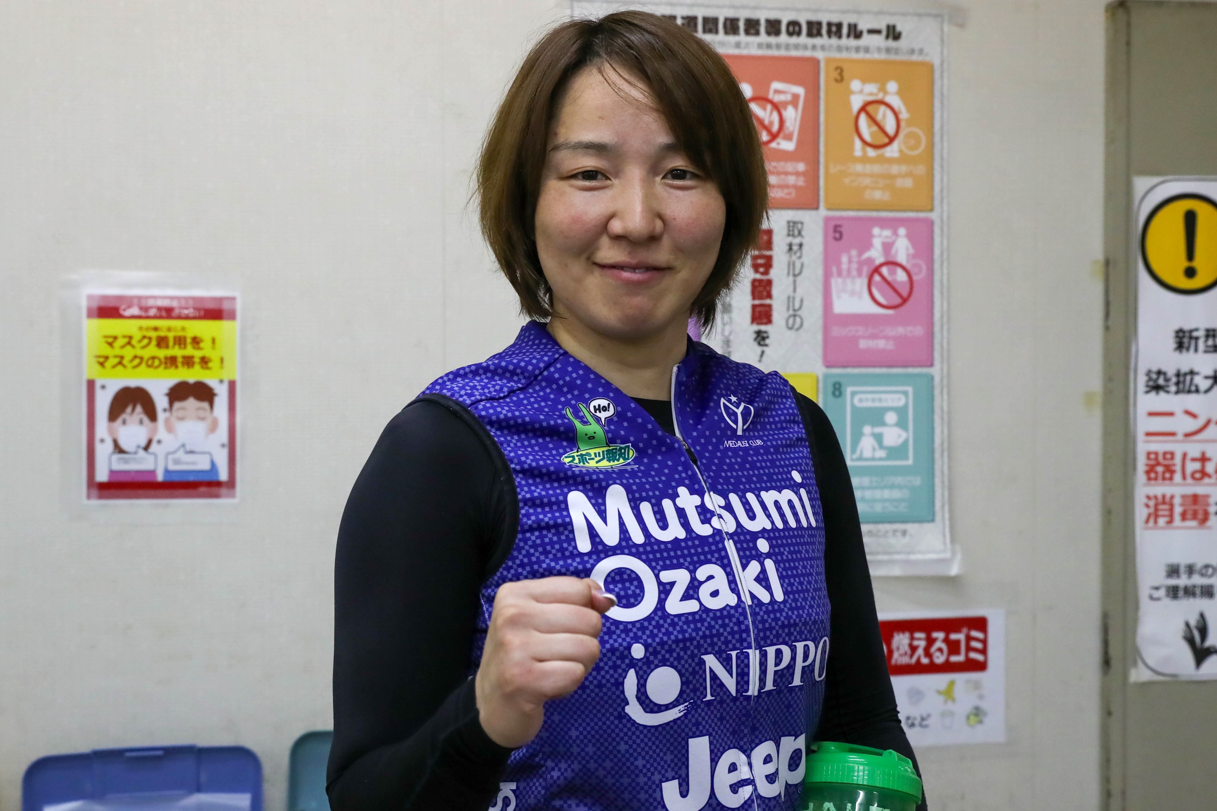 西武園競輪場では「報知金杯(FI)」が28日に初日を迎えた。6R のガールズ予選①で1着の尾崎睦に話を聞いた。