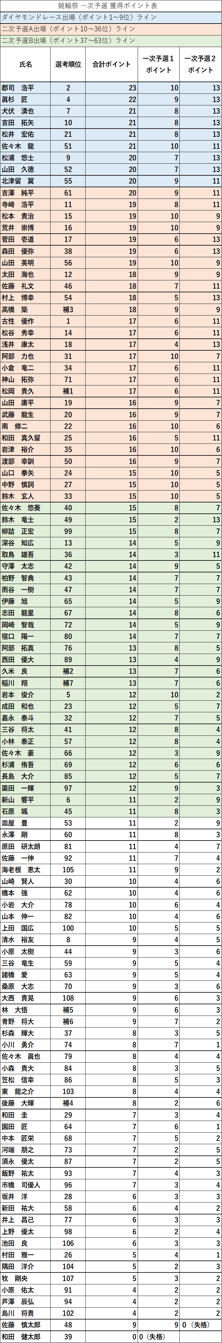 ダイヤモンドレース・二次予選A,Bへの勝ち上がりは一次予選を2走してのポイント制です。 このコラムでは各選手の獲得ポイントを速報で配信します!!
