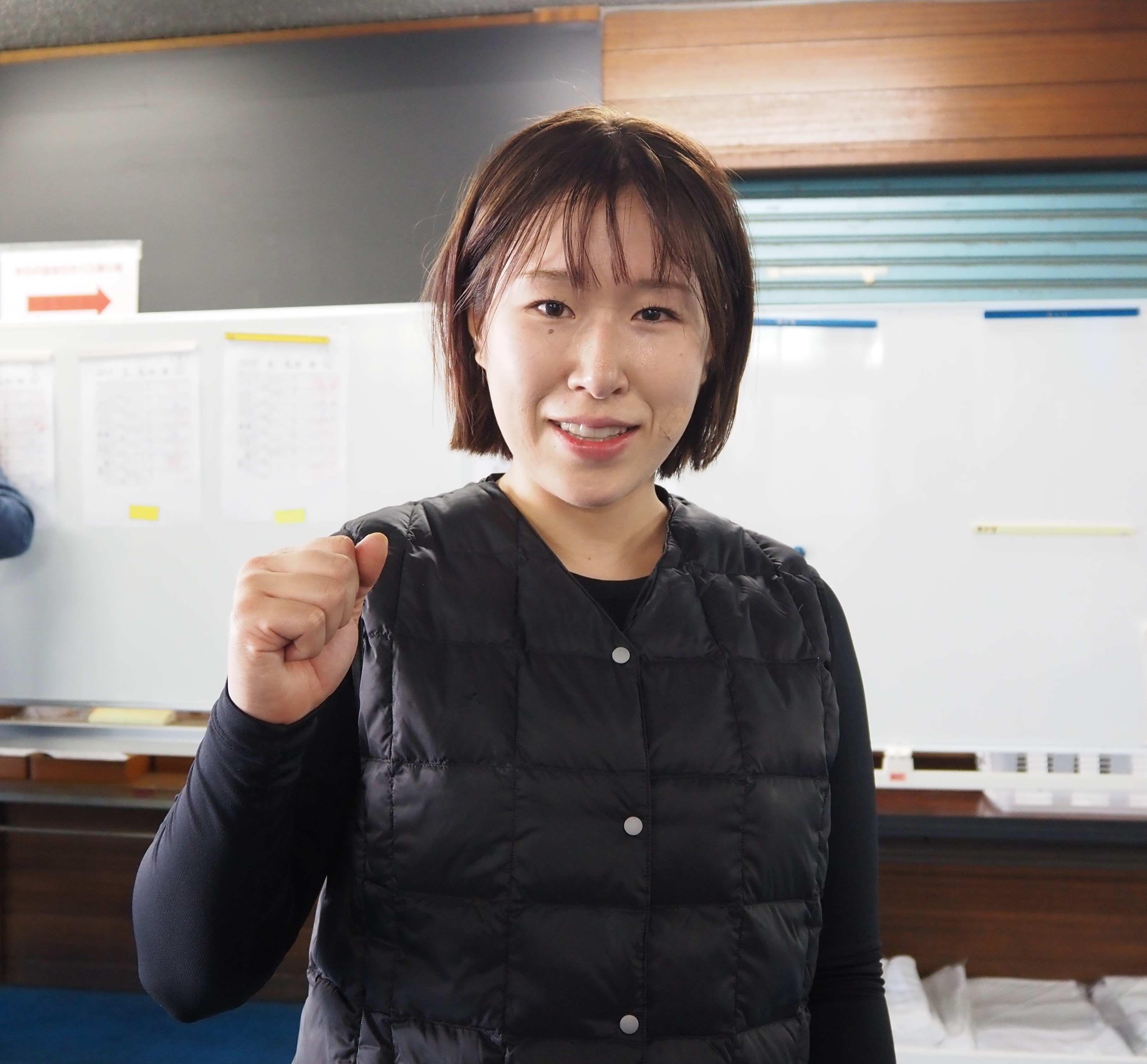 「2日目は初日よりも感じよく走れたと思います。33バンクの感じも掴めていたし。でも、半田さんが強かったですね。出させず突っ張り切るのが一番だったけど、行かれてきれいに飛び付ければ。出させちゃうとああなっちゃいますよね。決勝は半田さんのやりたいレースをさせないようにしたい。自力自在に」。