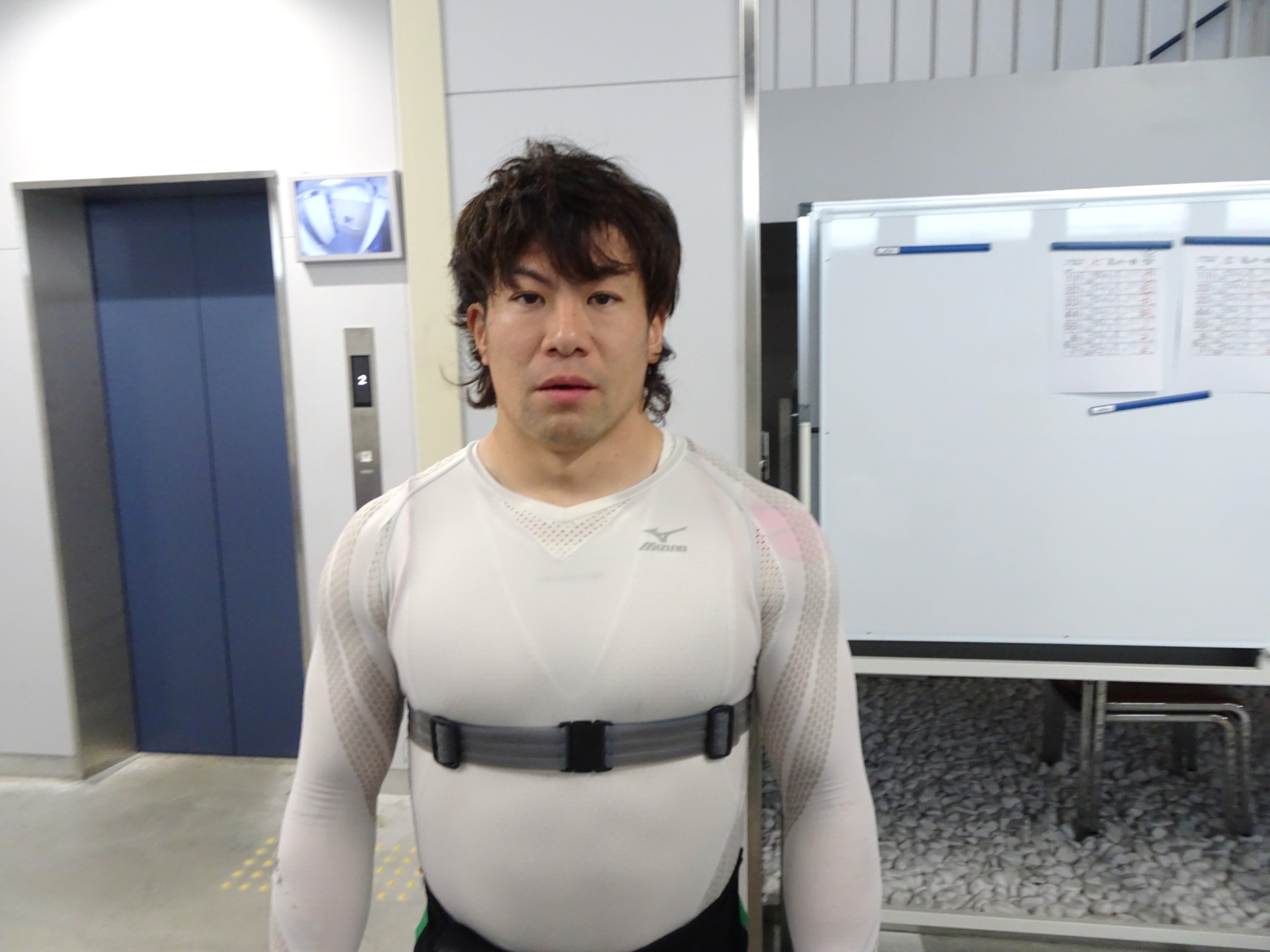 「初日と同様に踏んだ感触は重かったけど、このセッティング(今回は触っていない)で馴染ませていきたい。決勝は相手も初日と同じ。考えながら自力で力を出し切れるように」