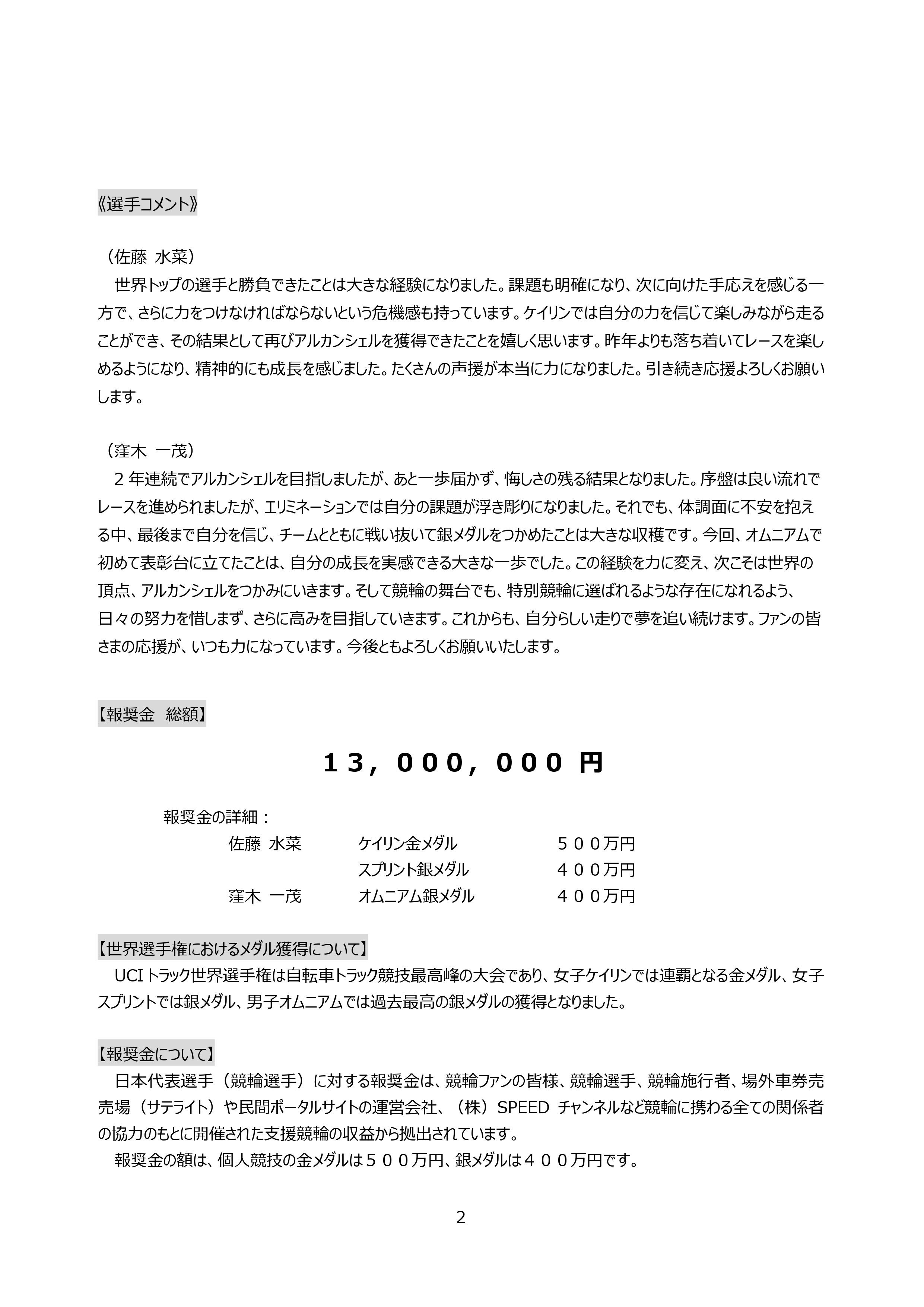 本日11月19日(水)小倉競輪場において、UCIトラック世界選手権(10月22~26日・チリ)においてメダルを獲得した日本代表選手(競輪選手)から、ファンの皆さまに向けて、メダル獲得の報告会を実施しました。