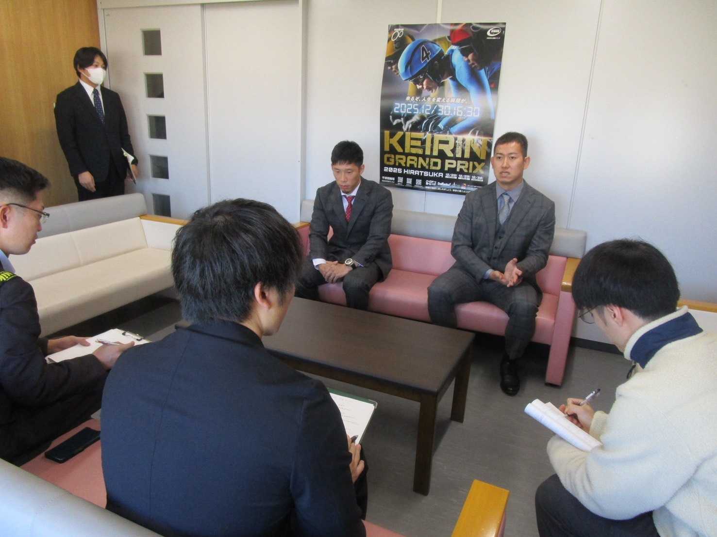 KEIRINグランプリ壮行会でファンに挨拶した後の脇本雄太、寺崎浩平両選手に個別取材を行った。