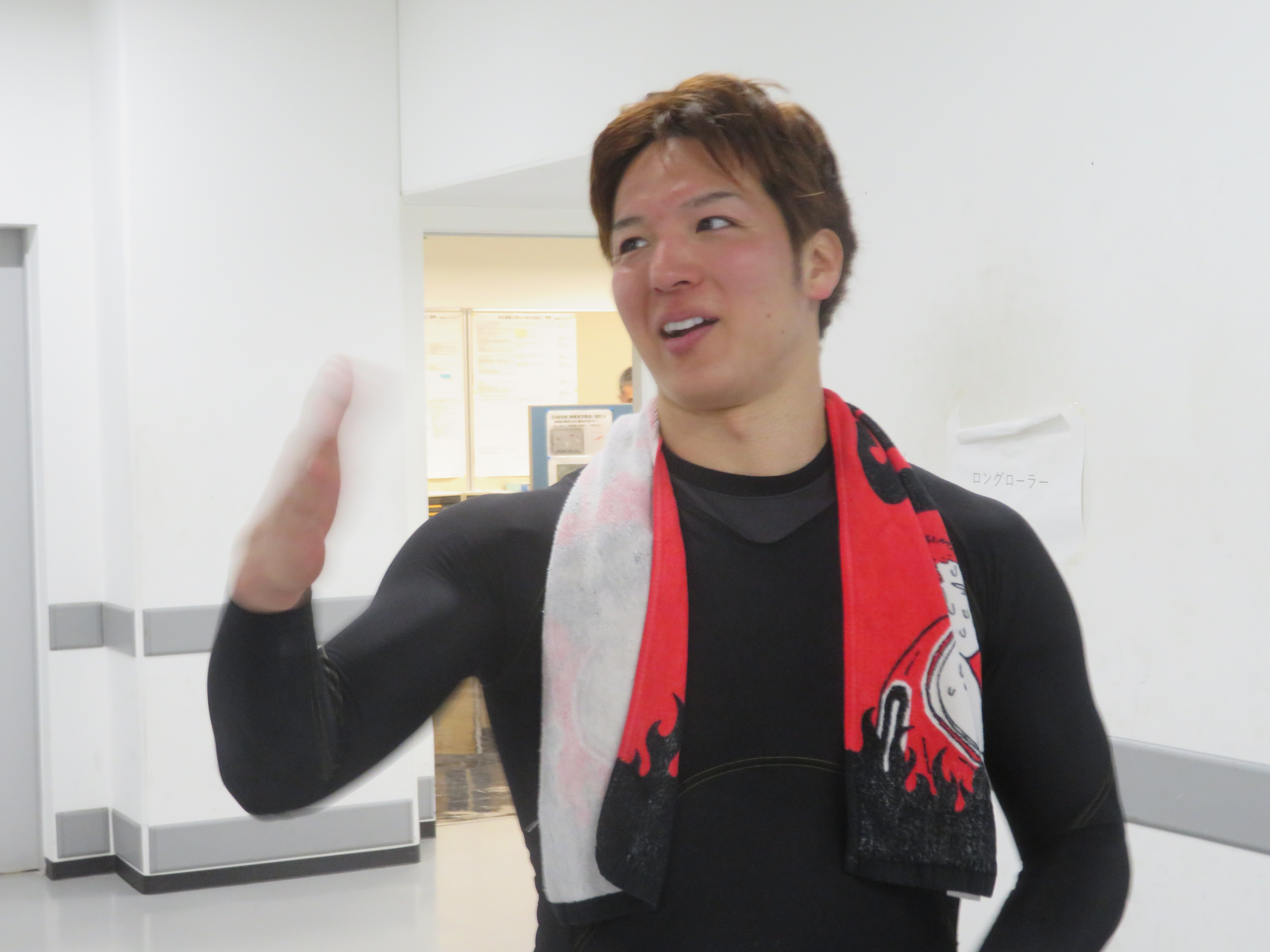 6R 復帰して5場所目となる山本貴章。「右肩の腱が切れていたけど、長く休むことになる手術はしていない。レースになるか不安だったけど頑張るしかない。大学と高校3年、中学3年の子供が2人いるからね」。