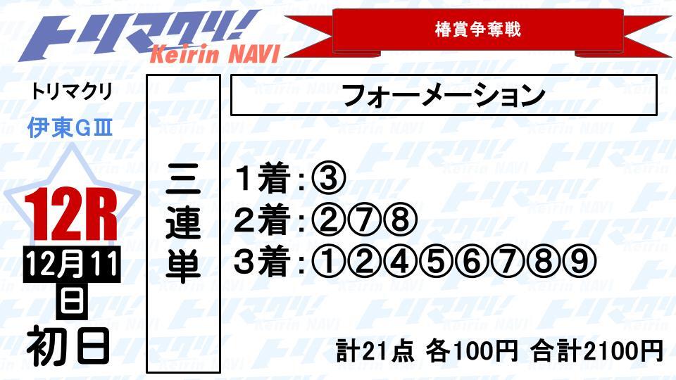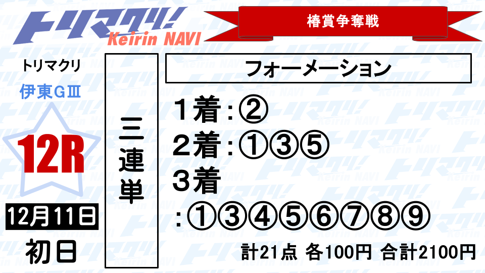 明日12月11日から伊東温泉競輪では開設75周年記念「椿賞争奪戦GⅢ」開幕です。初日12Rの特選を一斉予想!