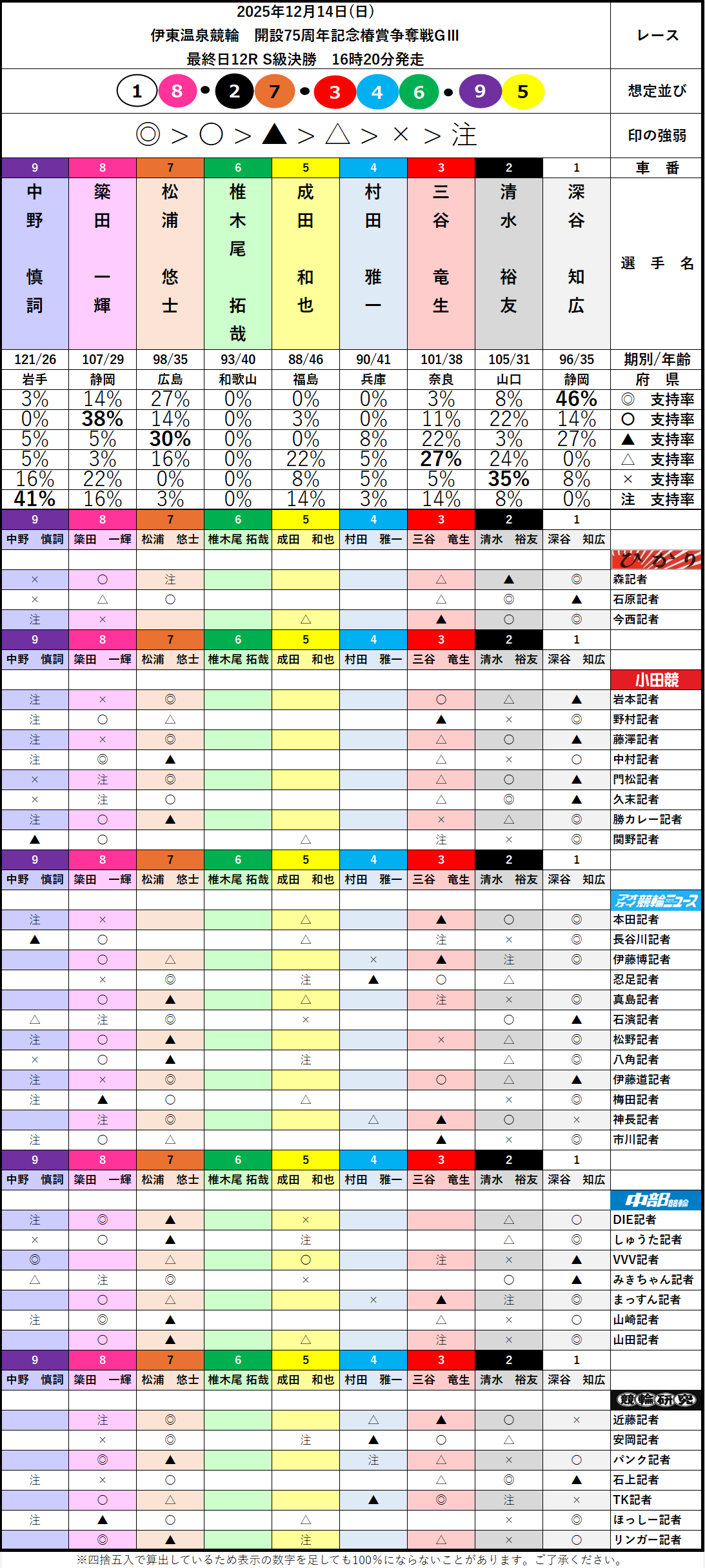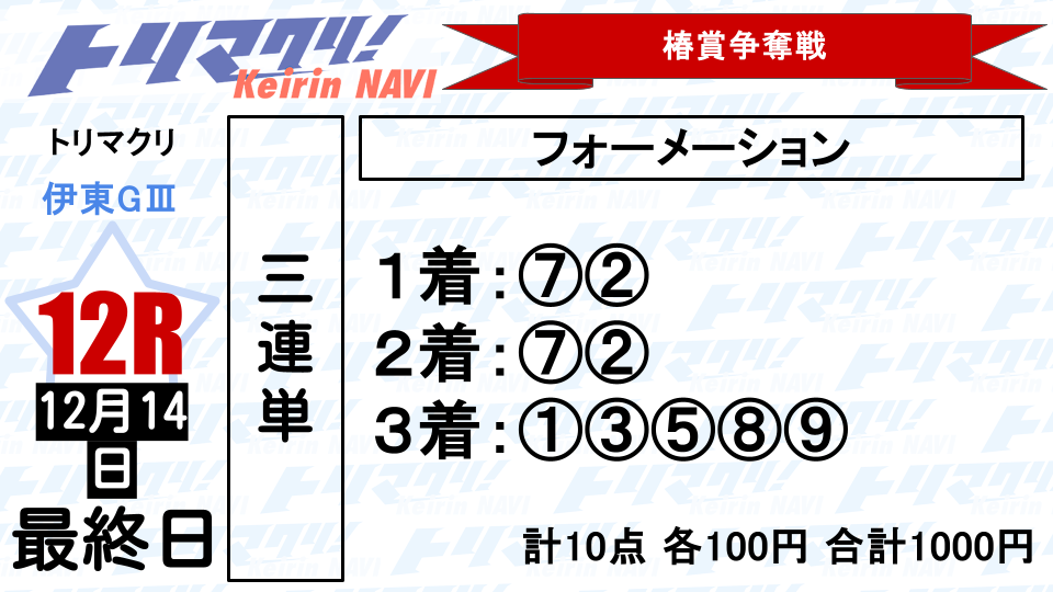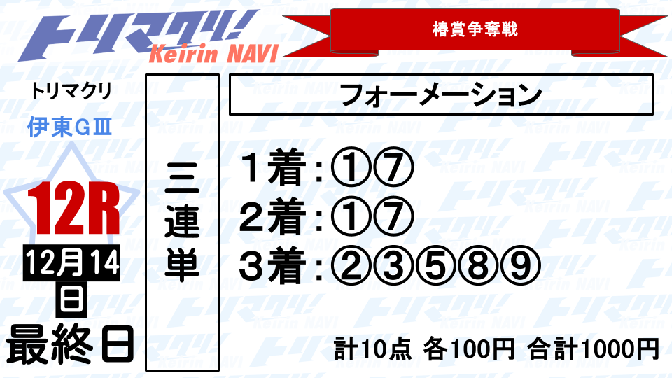 トリマクリ名物の記者一斉予想。12月14日(日)はいよいよ「椿賞争奪戦GⅢ」の決勝です!