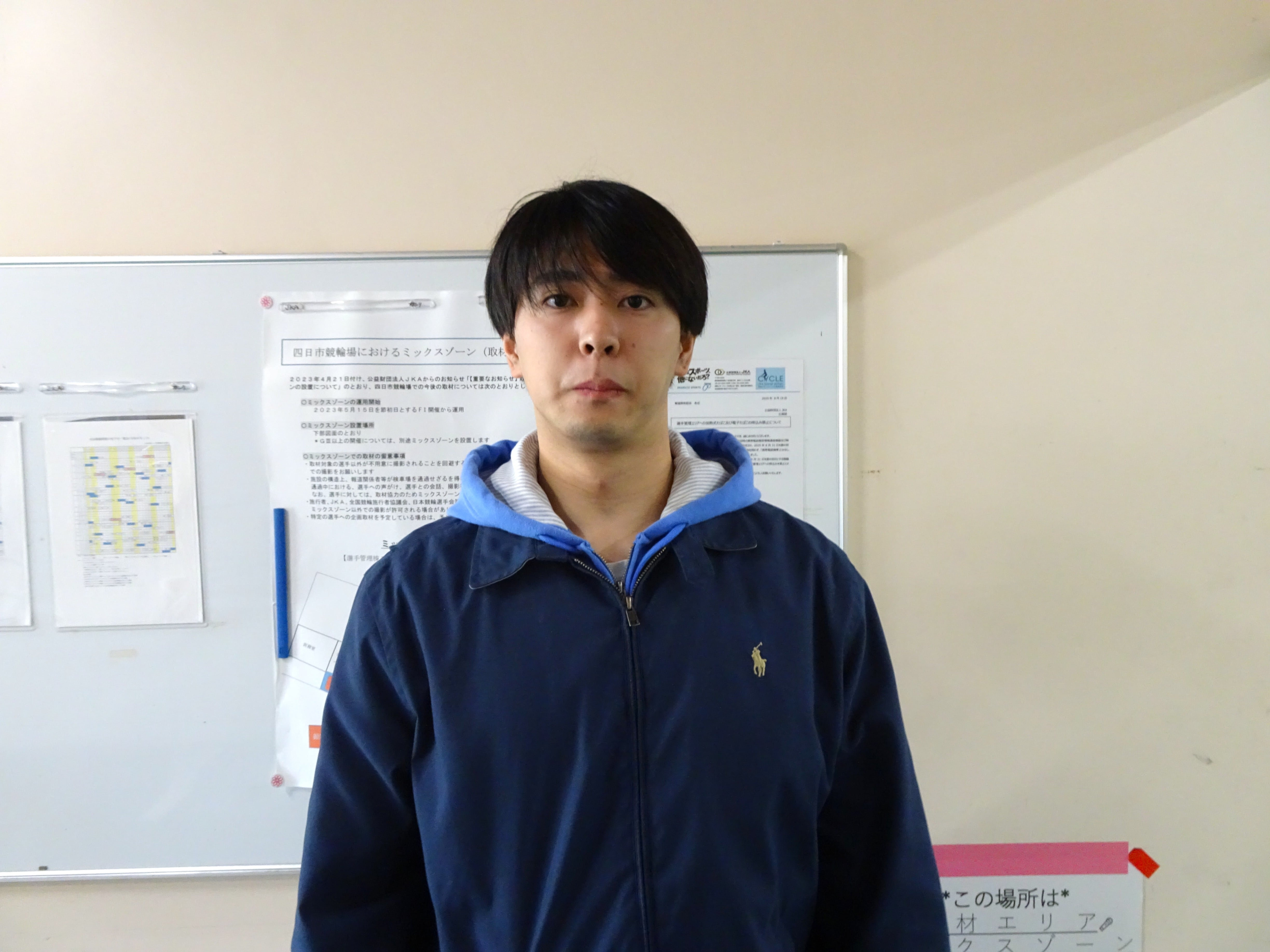 「近況は準決が上手くいってないけど、先行を基本に残れるようになりたいです。1年前の大ケガ?もう、ケガは体にはほぼ影響はないです。四日市は初めてです。初日は先行一車?自分でペースを作れるのはありがたいですね。自力です」