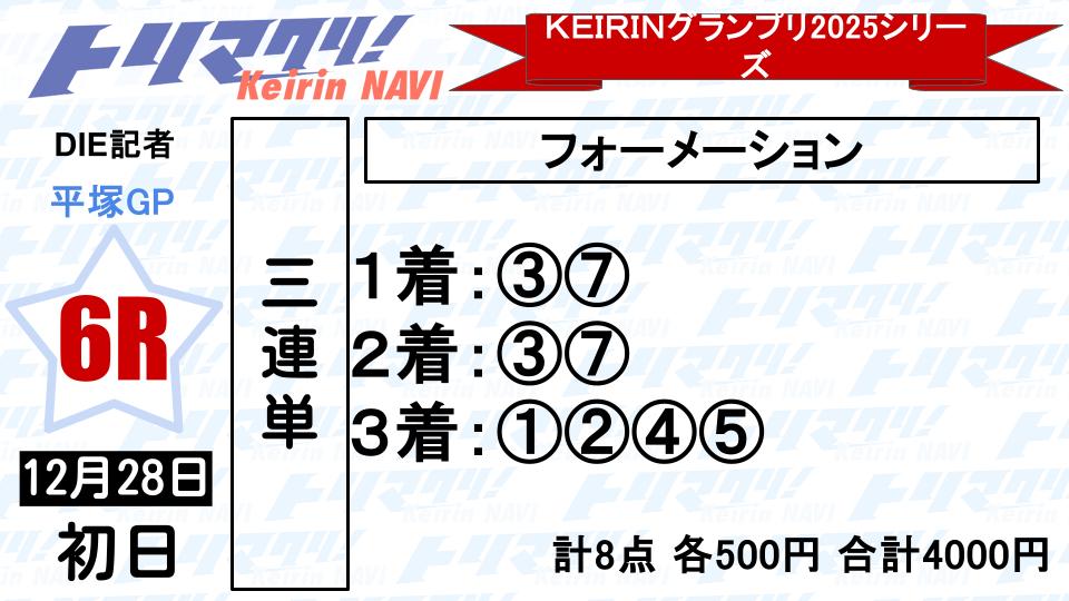 【6R S級 予選】⑦堀江は直近の予選は積極的で3連対と調子は上々。ペース掛けに持ち込んで番手の③関とゴール前争いだ!
