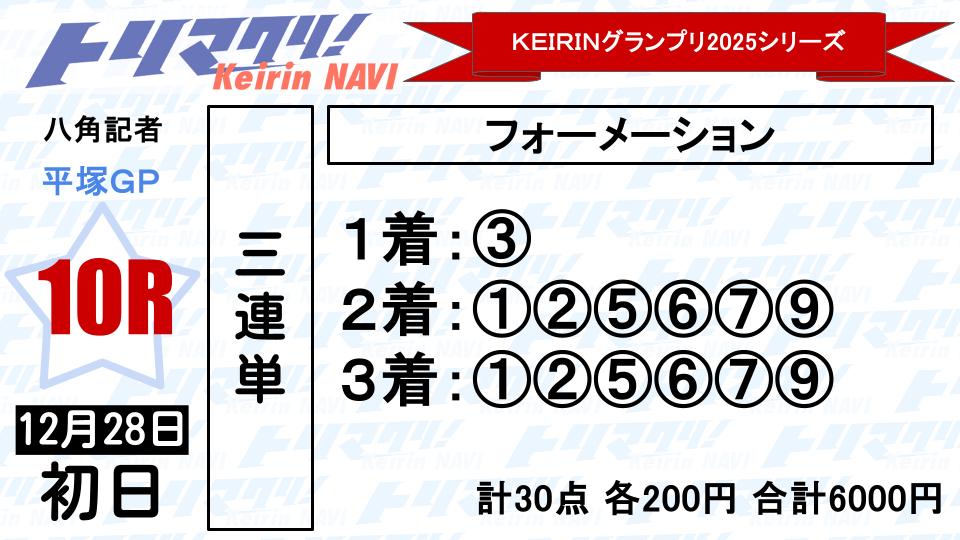 きれいな三分戦となり、②小川と⑦堀江の主導権争いに発展しそう。その争いを待ってましたと、近況成績が安定している⑤渡邉がひと捲りの展開。①佐藤壮もきっちりマーク。少し早めに仕掛ければ①の差しもありそう。