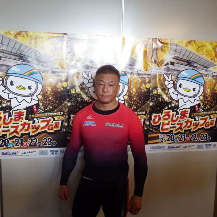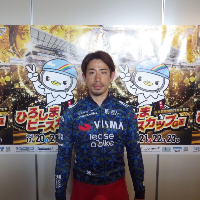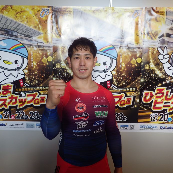 ①松浦悠士 「今年一年は走れなかった悔しさがある。怪我も早く治したかったですね。7月からS班でやって、赤パンでこのピースカップを走れるのは『運』がある。脚力的に足りてないけど、走る毎に感触は良くなっている。ラインのお陰だけど、結果も出せるようになってきました。新バンクは軽くなってライン取りが若干違うなと感じている。風向きは変わらないけど、建物がなくなった分、影響を受けやすくなってます。今節はシリーズを通してバック向かい風になると思う。しっかり広島勢が勝ち上って、誰かが取れるようにまとめていきたい。僕は現状の中で万全の力を出せる状態です。初日は中国3番手。」