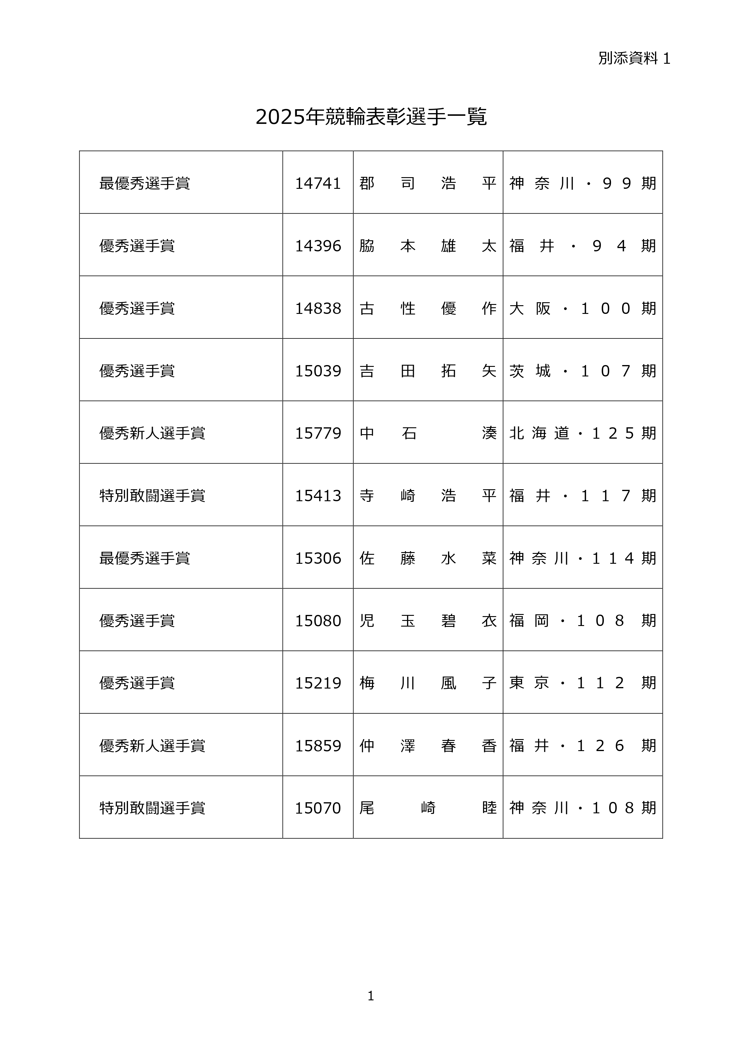 公益財団法人JKA(会長:木戸 寛)は、『2025年競輪表彰選手選考委員会』を開催し、別添のとおり表彰選手を決定いたしましたので、お知らせいたします。なお、表彰式典については、来る2月25日(水)に開催予定となっています。