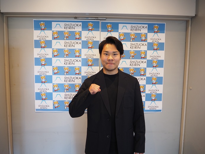 「(S級デビュー戦になります、抱負を教えてください)最初はA級でやってきた事を貫いていこうと思っています。そこでダメだったら考えて違う事も含めて壁を乗り越えていければと。(A級では敵なしに思えましたが)そうは言っても良くなったのは2024年の12月頃からなんですよ。1,2班に上がりたては全然ダメで時間がかかった感じ。今自転車に乗って6年になってやっと自転車に力が伝わってきました。良くなった要因はあります?お腹の腹圧が良い感じに力が入ってきましたね。無意識でも力が入っている感じです。静岡はA級で準優勝があり走りやすい印象。3日間しっかり走り切りたい」。