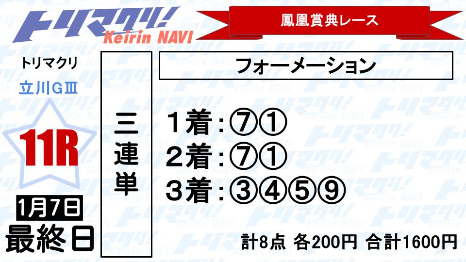 S級初勝利を挙げた⑨山田駿斗が最後は思い切った仕掛けに出そう。番手の③村上直久を軸に狙って。