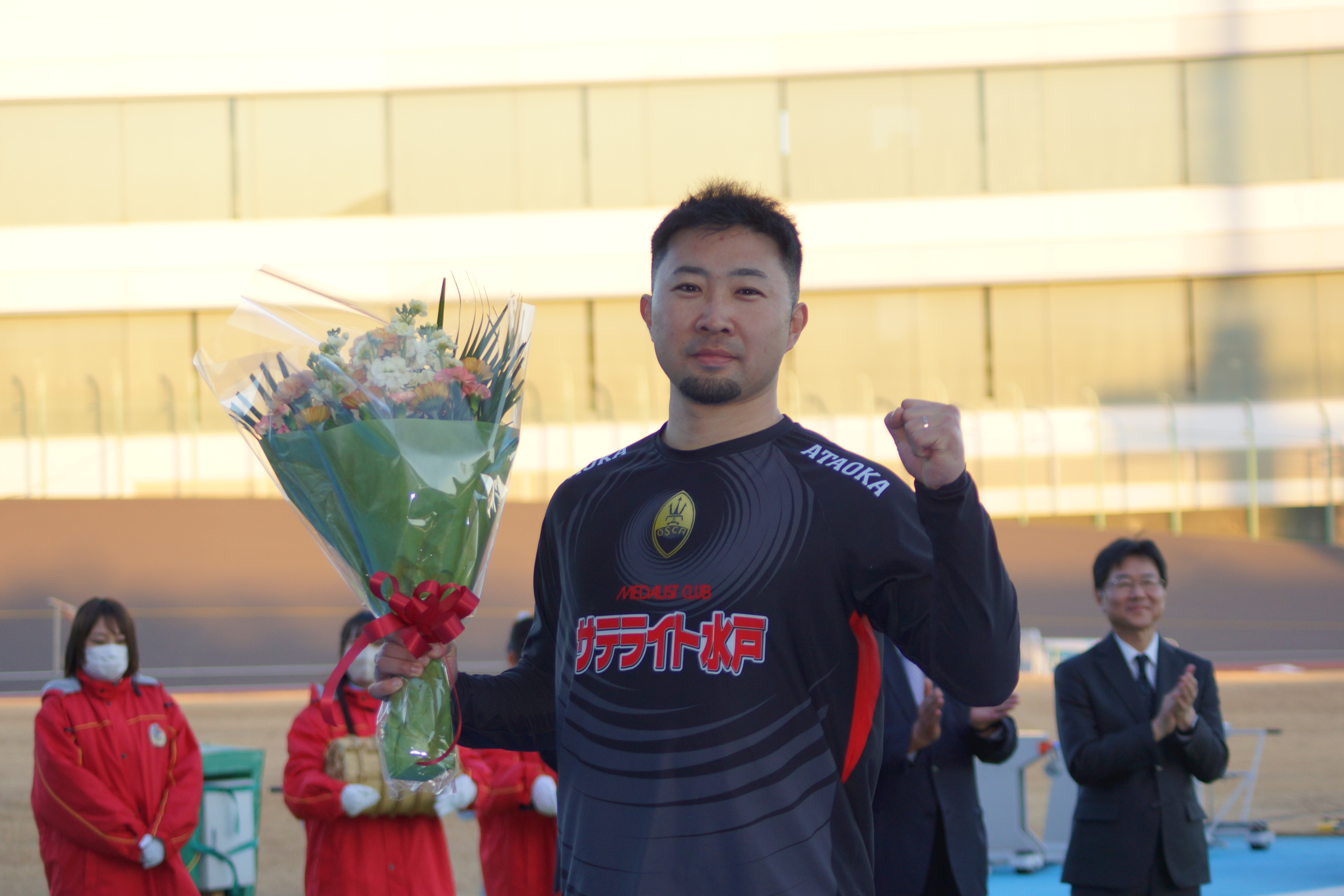 作戦は前が取れたら吉田君が突っ張ると言っていて、あとはお任せしますってことだったので自分の判断で仕掛けるだけでした。相手も強かったですし今回はサテライト水戸カップで3人決勝に乗れたので、誰か優勝出来るように走ろうという感じでした。今日は重かったのでみんなキツかったと思いますし、とにかく吉田君が強かったのでホームから少し車間空けて後ろを見ながら車間詰めてって感じです。昨日の準決勝はお客さんに申し訳ないレースだったので反省してそこも含めて走りました。番手を回るときは特に引き締めないといけないなと思いました。優勝出来るのは前後のラインのおかげなので、自分が自力のときはしっかり頑張りたいです。今年は良いスタートを切れたけど自力のときは距離が全然足りないですし、GⅠは前半は出られないけど後半出られるように頑張ってそこで活躍していければと思います。