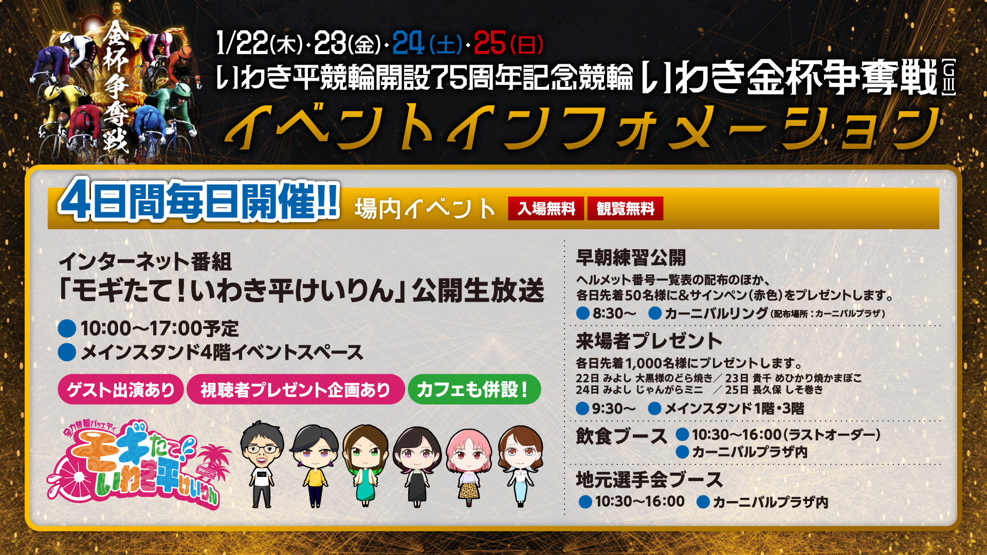 いわき平競輪開設75周年記念競輪 いわき金杯争奪戦GⅢ 開催期間中はお得なキャンペーンを開催しています。今すぐチェックしよう!