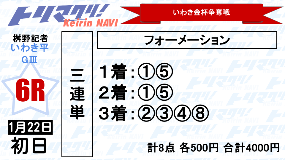 【6R S級一次予選】今の②島川将貴は脚力に対して人気が下がりそうで、狙い目かも知れない。