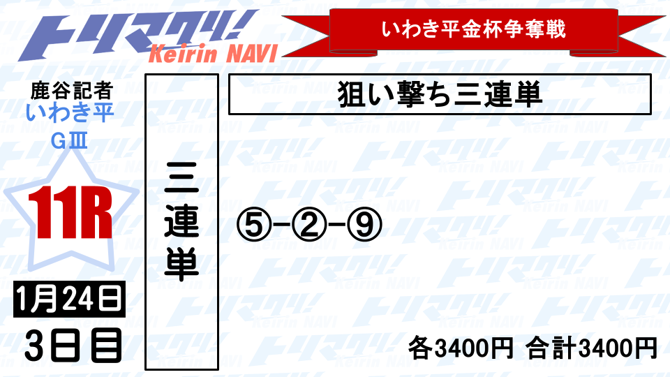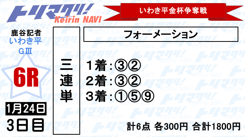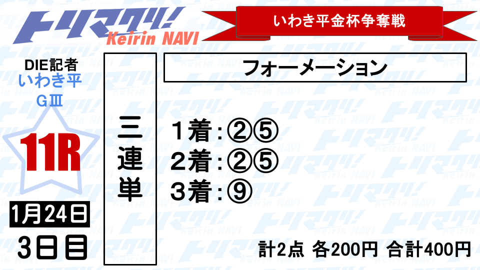 マーク⑤土屋壮との③=➄から3着は①②⑨を各300円