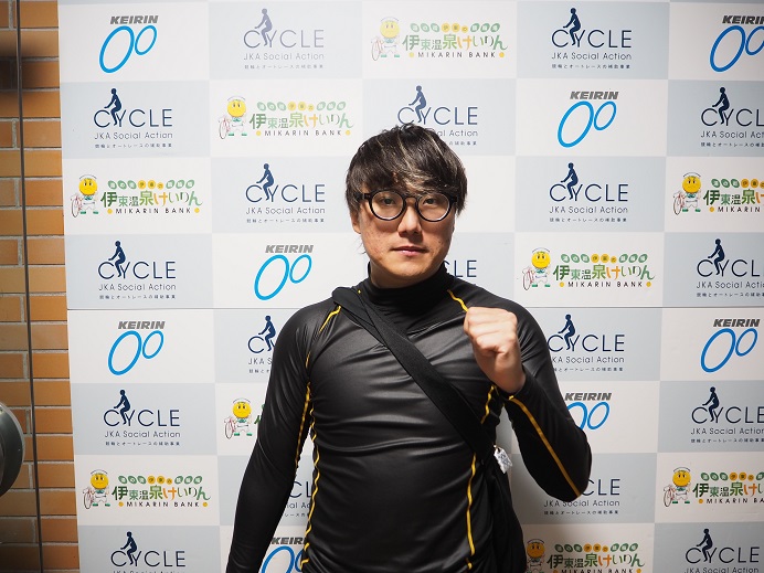 「(地元1着おめでとうございました)一度仕掛けた所で相手に突っ張られ、併される感じでヤバかったけど後ろの松山さんが自分を3番手に迎い入れてくれて。そこが大きかったですね。整ってから再度仕掛けて何とか勝てました。(今回の目標を?)2日目か最終日に師匠の田中孝彦さんの師匠の元選手の栗田雅也さんが応援に来るって聞いているんです。自然と気合いが入りますし、応援を力に変えないとですね。できれば決勝にいきたい」。