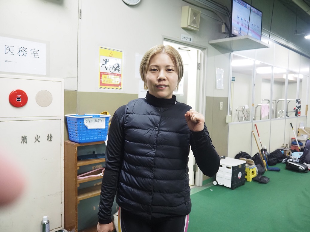 「練習でここに来る1週間前位からやっと人を捲れる感じだったので不安しかなかった。車番が悪かったので後ろは想定内でした。島野さんが山中さんを持って行ってて、どこまでやるんだろう?と見過ぎてしまい。3角過ぎからの捲り追込みだったけど、グンと出たし、ピンピンで勝ち上がれて上出来です。」