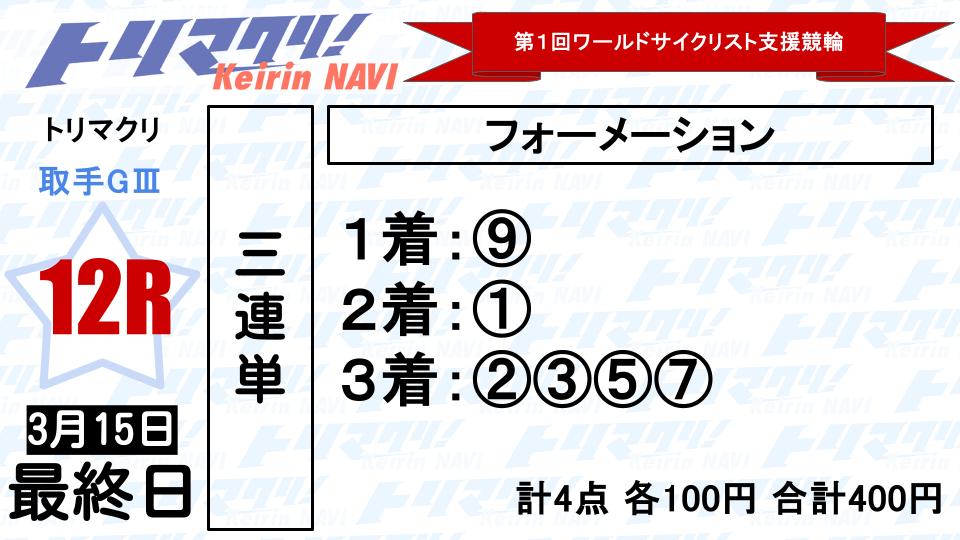 決勝戦の並びだが①松浦悠士に準決勝で三番手だった⑨原井博斗の2車。東北は3車で⑧小堀敢太③佐藤慎太郎④内藤宣彦